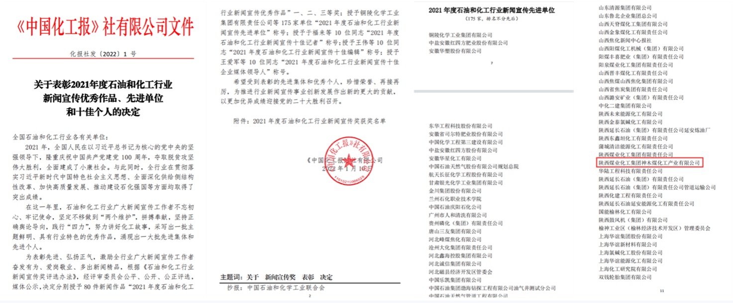 訪問次數:4047近日,從《中國化工報》社有限公司獲悉,神木煤化工公司被授予“2021年度石油和化工行業新聞宣傳先進單位”稱號。 2021年以... -