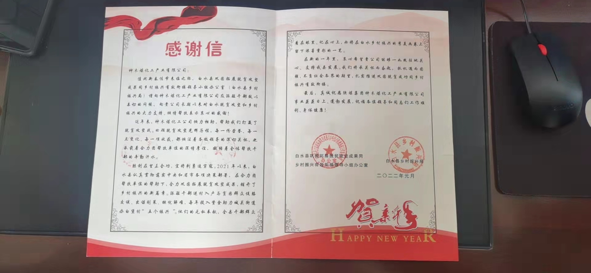 訪問次數:4920日月其邁,時盛歲新。春節前夕,白水縣鞏固拓展脫貧攻堅成果同鄉村振興有效銜接領導小組辦公室、白水縣鄉村振興局向神木煤化工發來感...