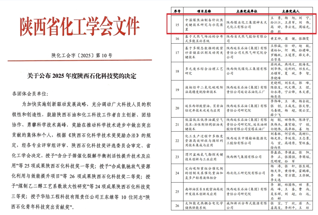 近日,從陜西省化工學(xué)會印發(fā)《關(guān)于公布2025年度陜西石化科技獎的決定》獲悉,神木煤化工天元公司“中溫煤焦油制備針狀焦關(guān)鍵技術(shù)研究與示范裝置”創(chuàng)新成果榮獲2025年度陜西石化科技獎二等獎。