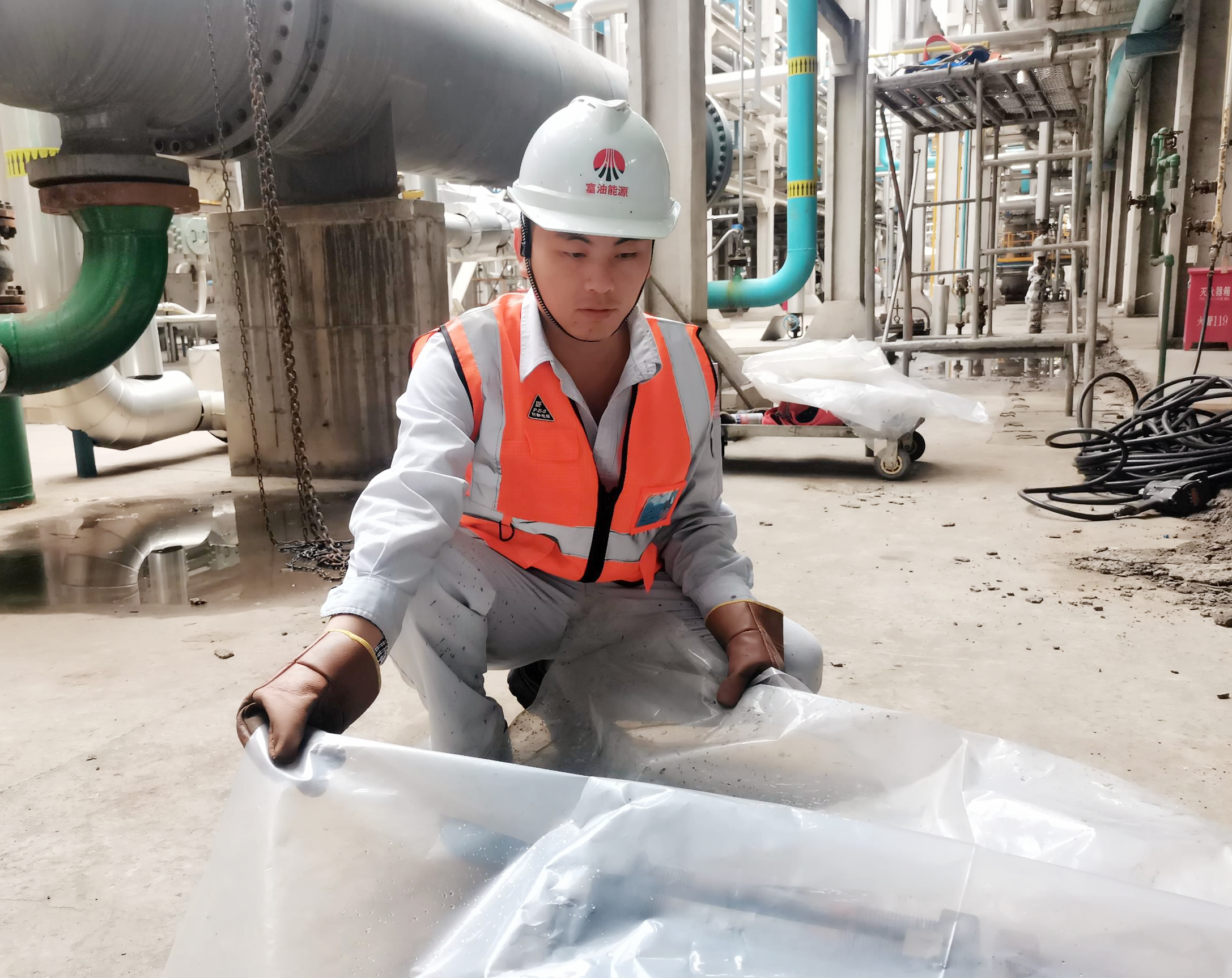 在神木煤化工富油公司50萬(wàn)噸/年煤焦油全餾分加氫制環(huán)烷基油項(xiàng)目大修現(xiàn)場(chǎng),有這樣一群身著橙色馬甲可愛又靚眼的人,大家都叫他們“橙精靈”。