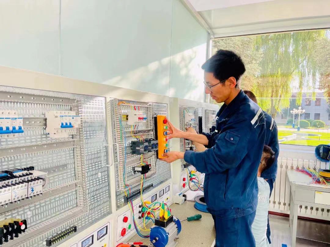 此次比賽共有18名選手參加,實(shí)操競賽主要進(jìn)行三相異步電動(dòng)機(jī)單向全壓啟動(dòng)連續(xù)運(yùn)行控制電路,時(shí)間繼電器切換控制的星三角轉(zhuǎn)換控制電路,繪制電氣控制原理圖,電動(dòng)機(jī)基本控制電路、星三角轉(zhuǎn)換,控制電路的安裝接線及調(diào)試,故障分析等。