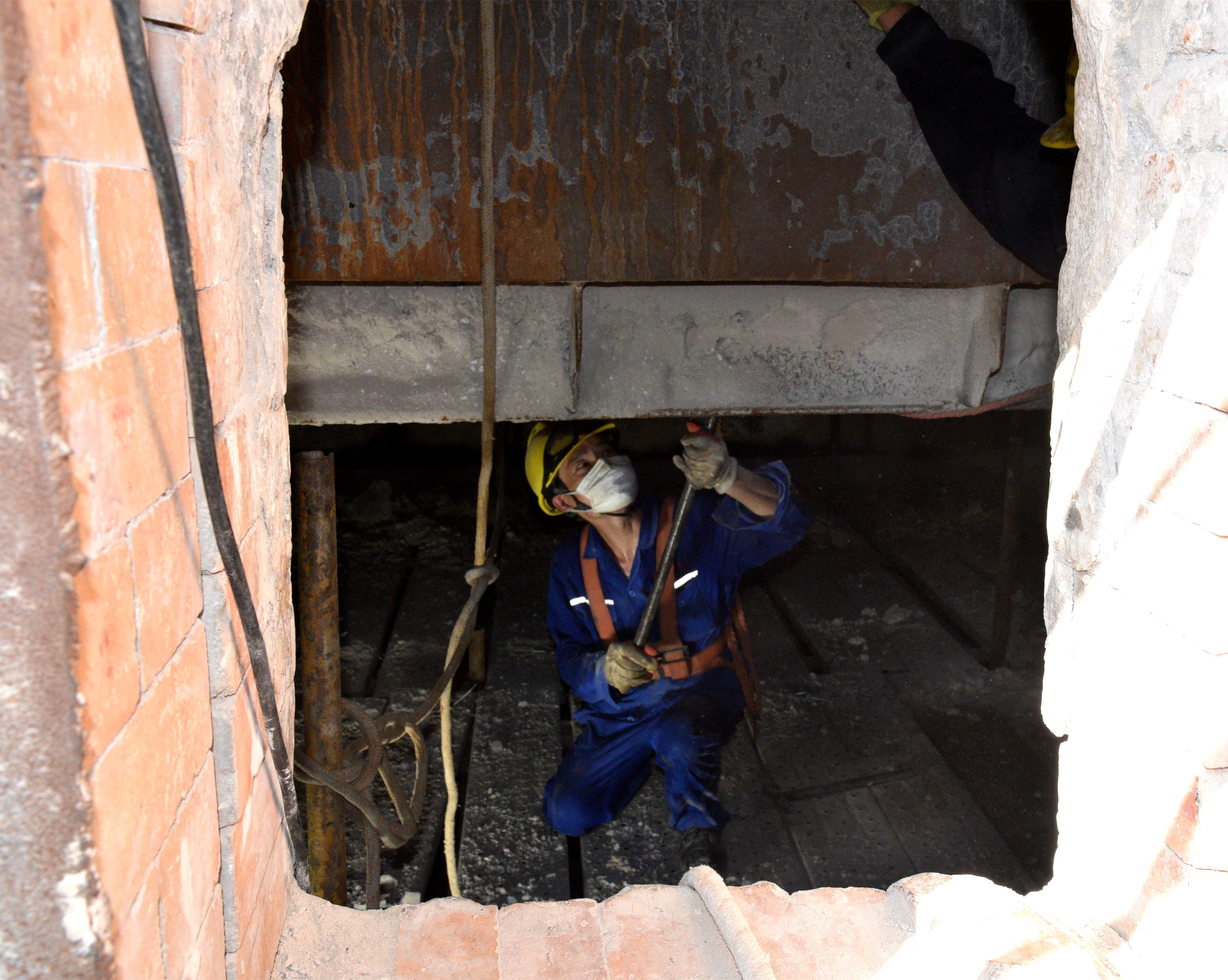 更換除塵器絞輪 拆除舊換熱器 更換除塵器絞輪 清理上吸氣梁進(jìn)氣孔 清理上吸氣梁進(jìn)氣孔 制作換熱器