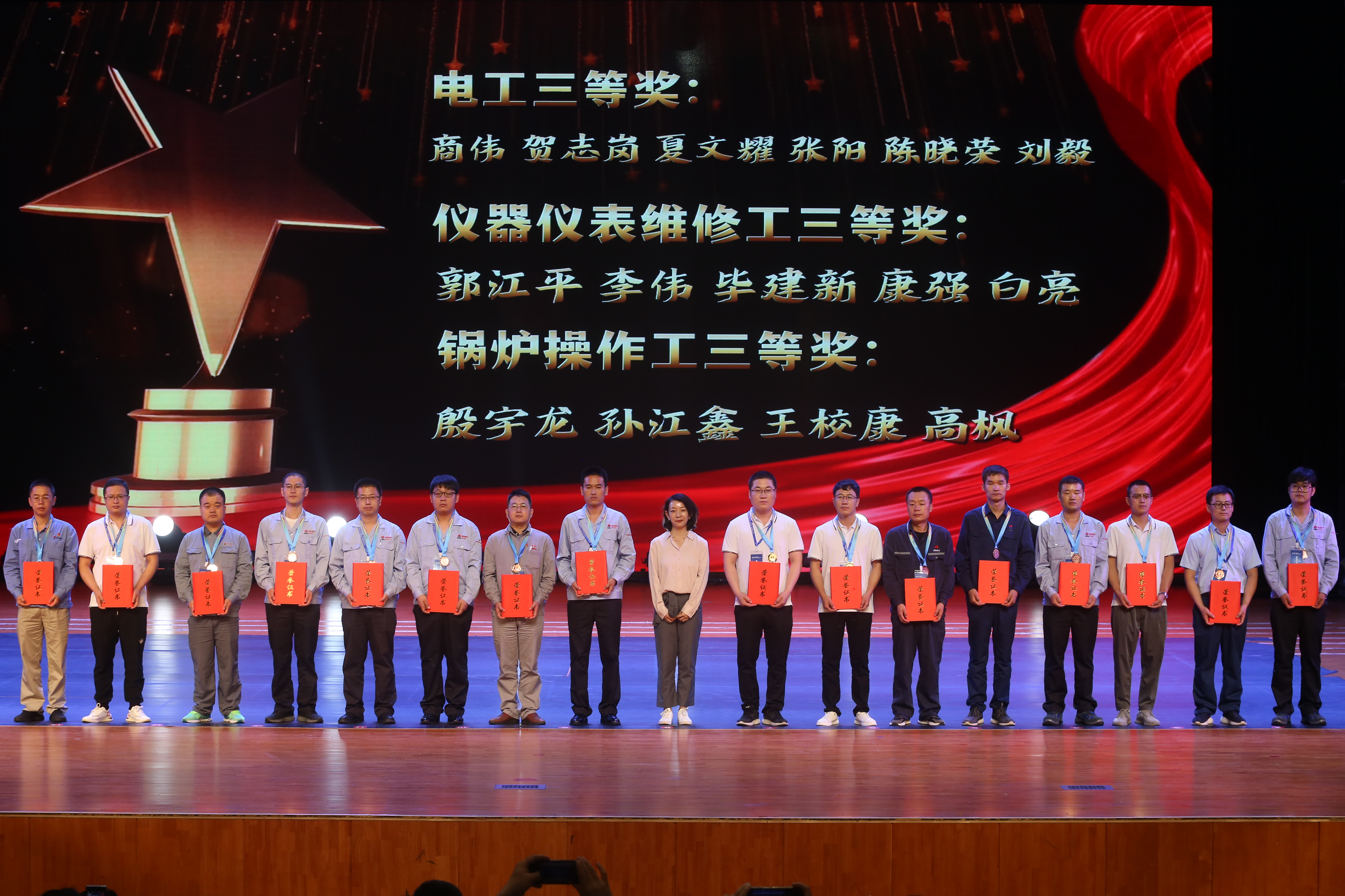 最終經(jīng)過(guò)2天激烈的角逐,神木煤化工公司代表隊(duì)獲得團(tuán)體金獎(jiǎng),渭河煤化獲得團(tuán)體銀獎(jiǎng),蒲潔能化獲得團(tuán)體銅獎(jiǎng)。神木煤化工公司李靖飛等10人獲得個(gè)人一等獎(jiǎng),陜焦化工鄧琪等13人獲得個(gè)人二等獎(jiǎng),北元化工賀志剛等16人獲得個(gè)人三等獎(jiǎng);王在君等6人獲得“優(yōu)秀裁判員”稱號(hào);神木煤化工公司、陜化化工等8家單位獲得“優(yōu)秀組織單位”稱號(hào)。