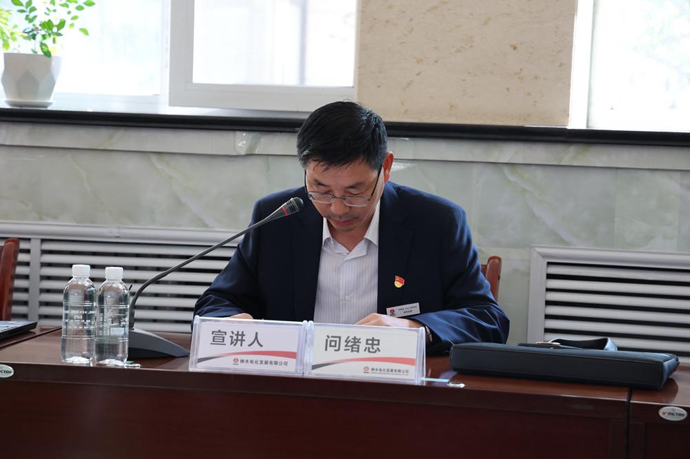 9月29日,神木煤化工公司黨委副書記、總經理雷宏春,副總經理問緒忠到電化公司開展《習近平談治國理政》第四卷宣講會。