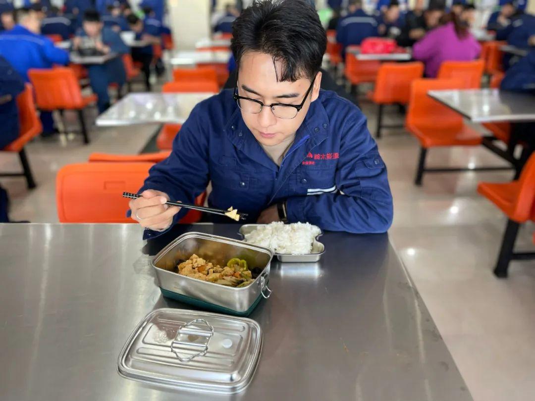 “能源公司工會(huì)給我們發(fā)的不銹鋼保溫飯盒真實(shí)用,以后去食堂打飯?jiān)僖膊慌嘛埐藳隽耍 薄耙咔榉揽仄陂g,自帶發(fā)的飯盒,吃著放心,感覺(jué)更暖心。”職工郭義軒在餐廳就餐時(shí)說(shuō)道。