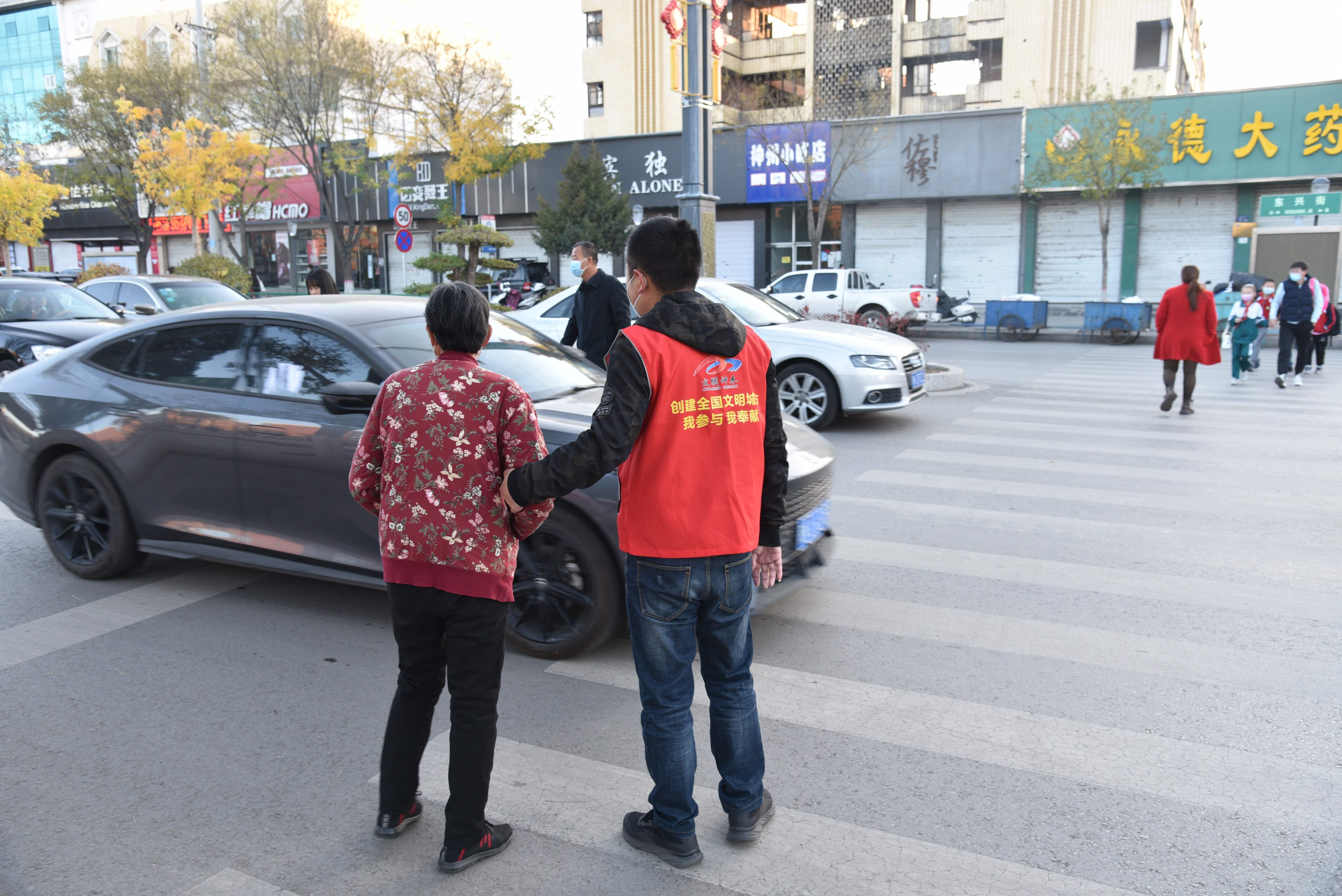 “小朋友,過斑馬線是不能跑的,你看往來的車輛這么多,很危險(xiǎn)的,要隨時(shí)注意安全”“阿姨,您別怕,我來扶您過馬路”志愿者郭春虎護(hù)送正要上學(xué)的小朋友和老人過馬路,并給他們講解交通知識(shí)。紅色的身影成為城市文明的“活名片”,他們的笑容和善意的提醒贏得了過往行人的一致好評(píng)。
