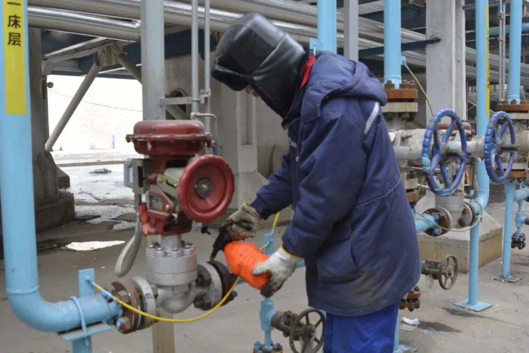 “冬季防凍要特別注意蒸汽疏水閥,如果疏水閥調節過小極有可能就會凍堵,但是調節過大就會有水擊情況并且造成蒸汽損耗過大,所以要勤檢查”。筆者走進FTH中心二聯合裝置區技術員折佳樂正在培訓檢查防凍情況。