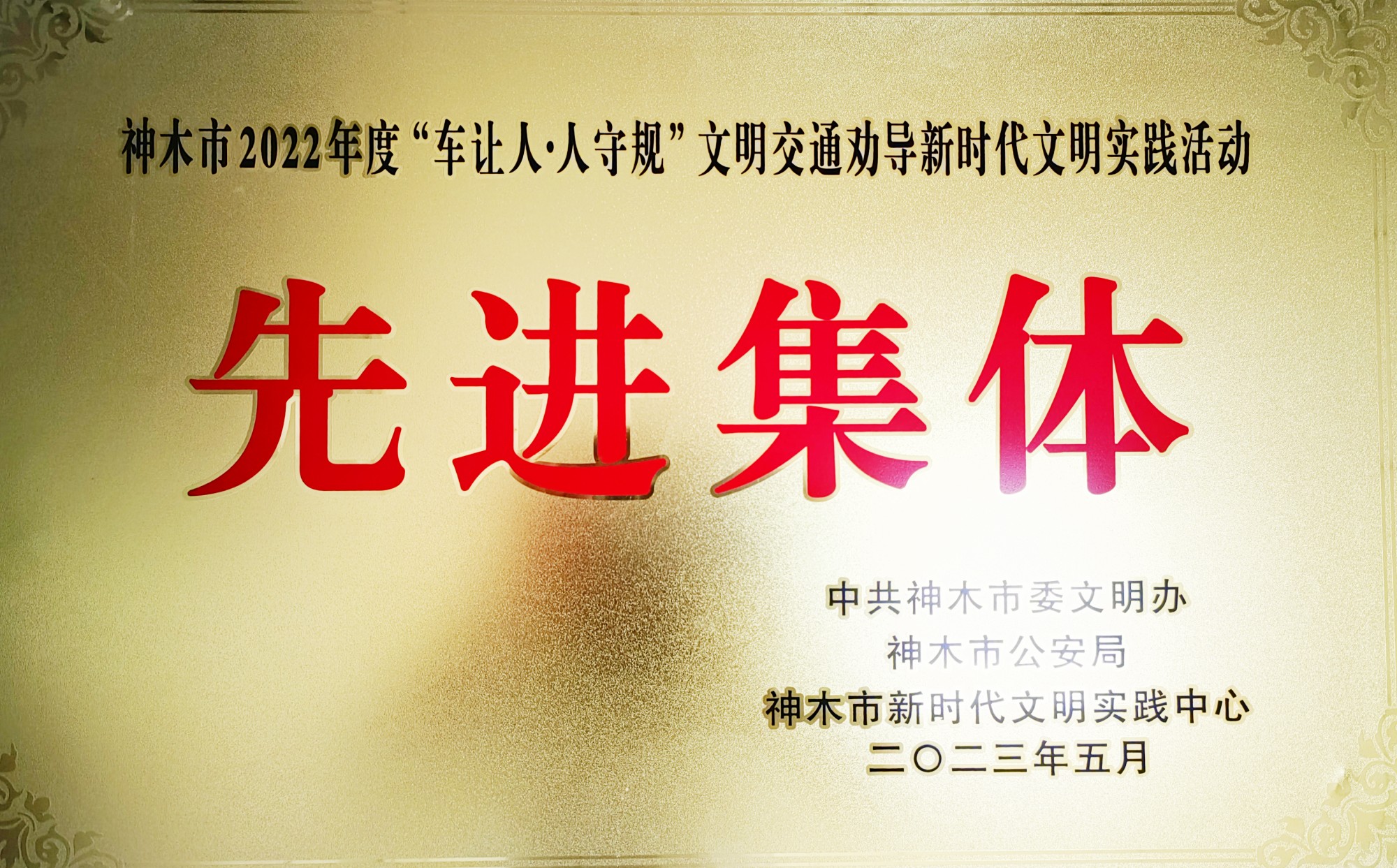 近日,神木煤化工電化公司榮獲神木市2022年度“車讓人·人守規”文明交通勸導新時代文明實踐活動先進集體榮譽稱號。