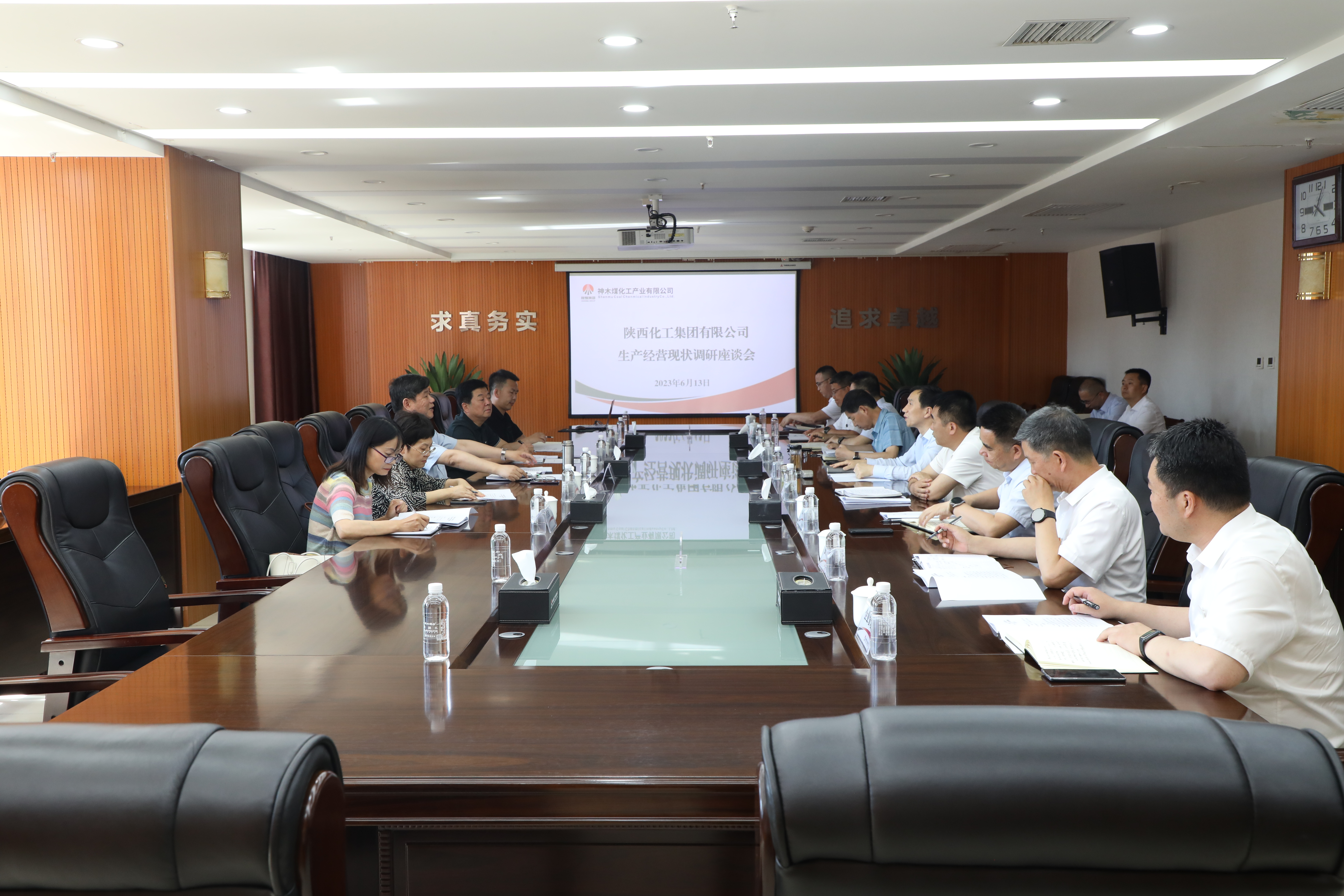 6月13日,陜西化工集團副總經理、總會計師張崇濤一行5人到神木煤化工公司對生產經營現狀進行調研,深入了解公司面臨的困難和存在的問題。公司黨委書記、董事長毛世強,黨委副書記、總經理雷宏春,及其他領導班子成員等參加調研會。