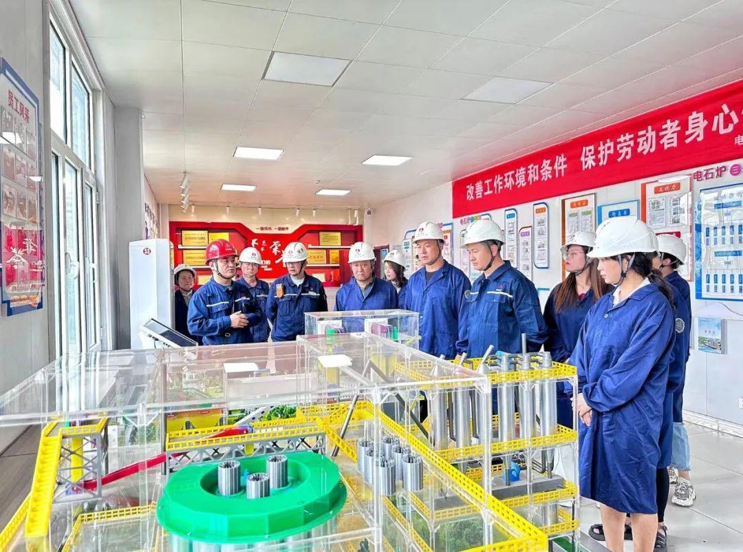 首夏猶清和,芳草亦未歇。暑雨初晴后的電化公司陽光熱烈,樹蔭溫柔,微風淺吟,滿目青翠。在講解員的帶領下,受邀人員一行觀摩了安全展板、消防模擬應急演練、應急物資配備情況、VR安全體驗室、技能培訓中心等。映襯著綠樹青草,花團錦簇,穿過干凈整潔的勞模路,受邀人員走進生產廠區,一同參觀了公司環保設施、安全環保長廊、熱電、電石沙盤模型、電石中控室、班組建設文化長廊,體驗了“職工健康小屋”里多種智能身體指標檢測設備。