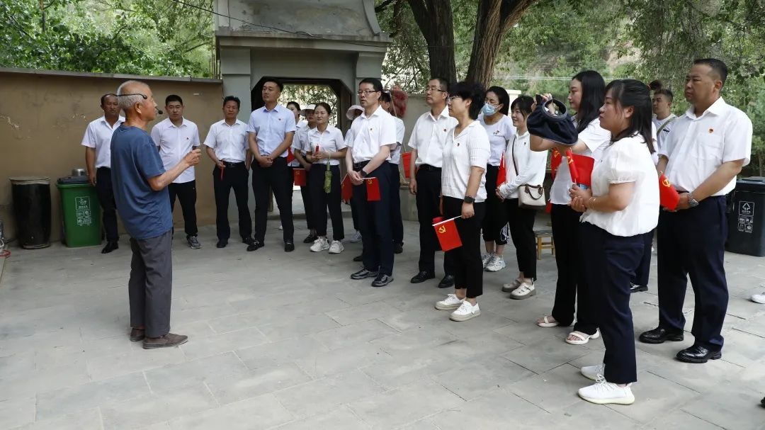 沿途一路前行,來到棗林則溝會議舊址,一位古稀老人早已等候在小院門口,老人的爺爺就是當年這五孔窯洞的主人,在這里,老人為大家講述了當年毛澤東、周恩來、任弼時等中共中央及前委領導在棗林則溝召開的重要會議,會議根據形勢的要求,確定了中央書記處的工作分工,既保障了中共中央和人民解放軍總部繼續留在陜北,對全國各解放區實施不間斷的指揮,又做好了應付各種突然事變的準備,在轉戰陜北途中具有里程碑的意義。離開會議舊址時,劉建同志帶領全體黨員重溫入黨誓詞,堅定黨員的入黨初心和恪守承諾,踐行自己的責任與義務。