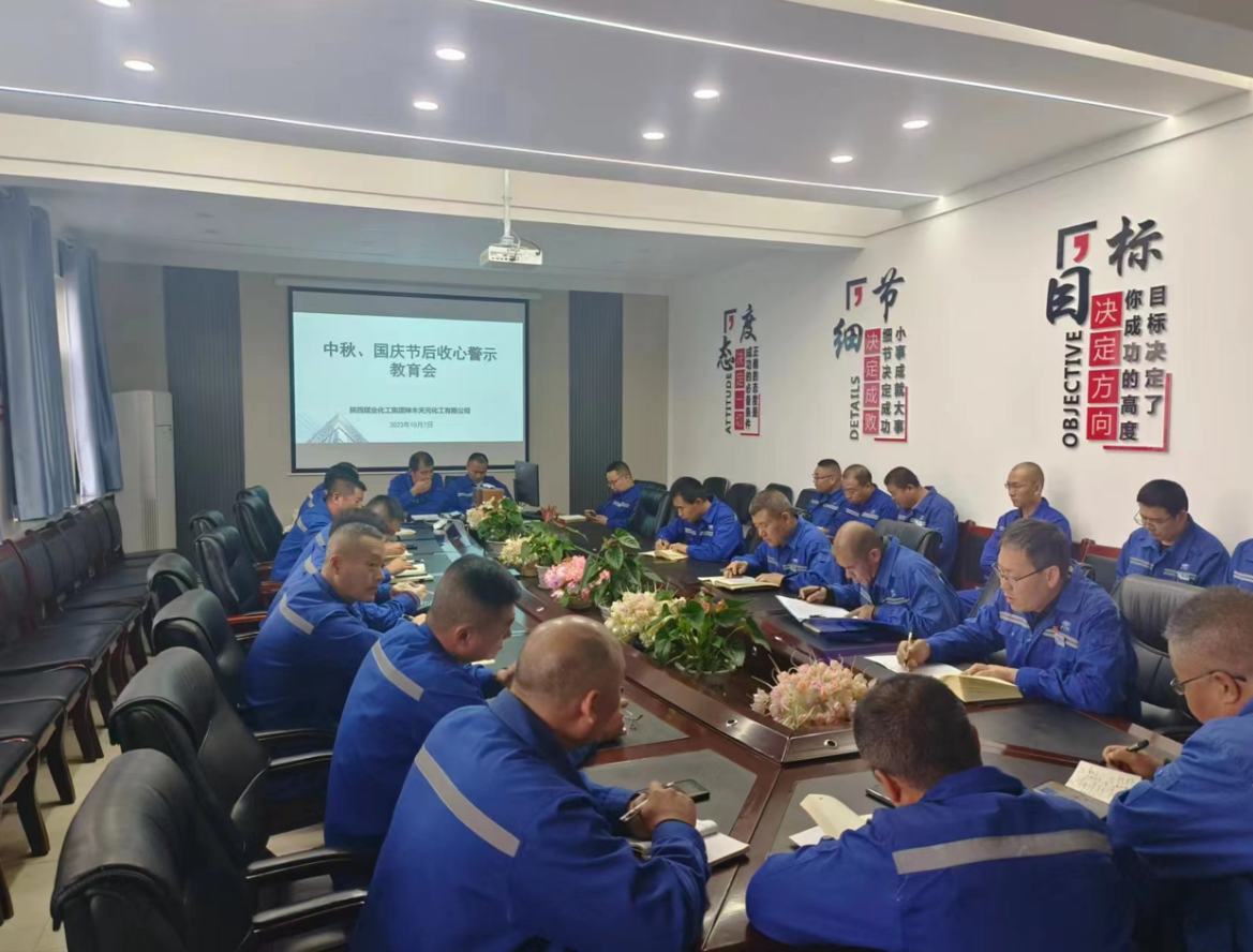 10月7日上午,神木煤化工天元公司召開中秋、國慶節后收心會,回顧總結“雙節”期間公司安全生產情況,安排部署下一步重點工作,公司黨委委員、副總經理尚德霖,安全總監王小龍,各車間、部辦負責人參加會議。