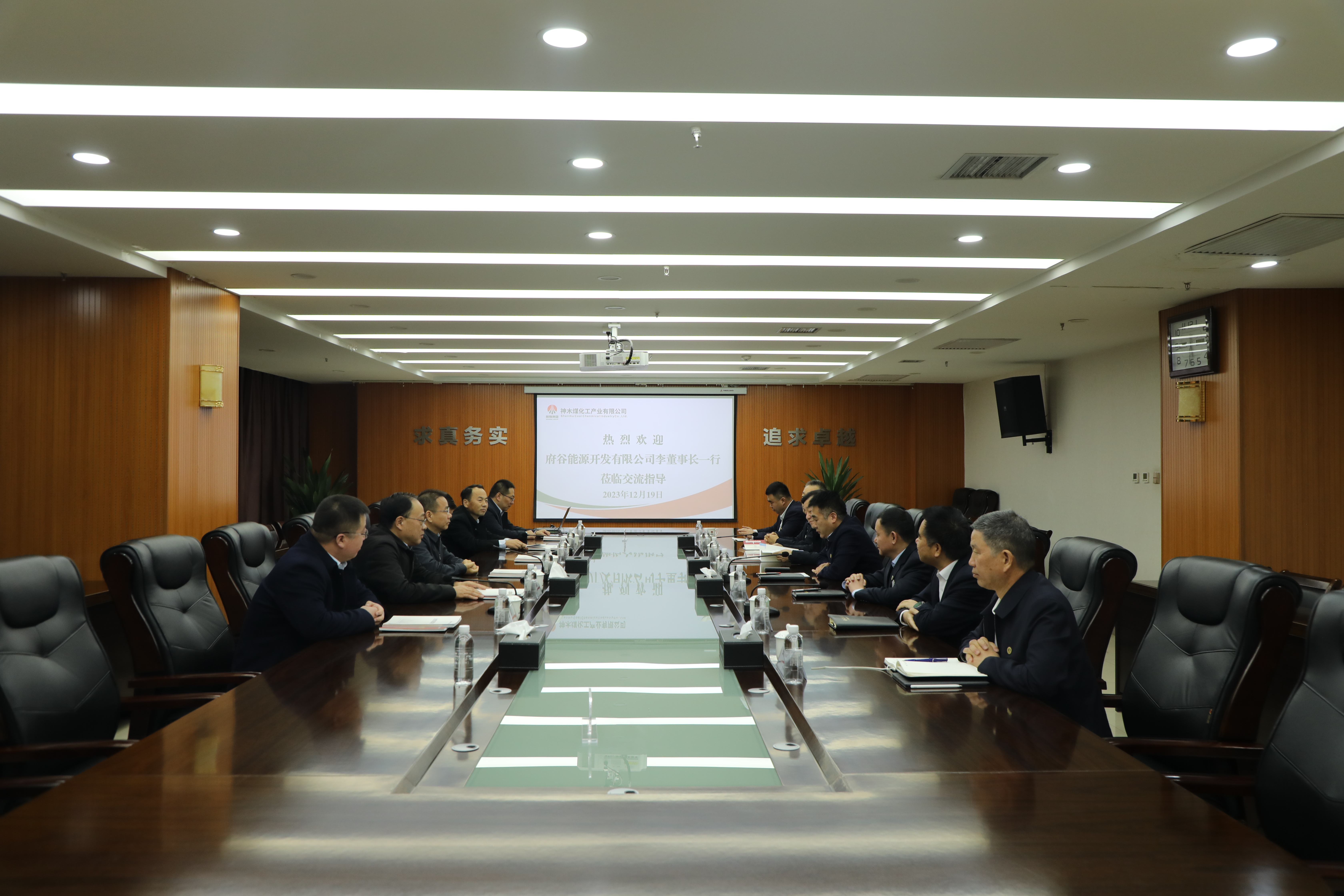 12月19日,府谷能源開發(fā)有限公司黨委書記、董事長、總經(jīng)理李寧一行來公司對標(biāo)交流。公司黨委書記、董事長雷宏春,黨委副書記、總經(jīng)理辛文輝,東鑫垣公司黨委副書記、總經(jīng)理劉向明,公司副總經(jīng)理張振濤、侯衛(wèi)斌、張泉國參會(huì)。