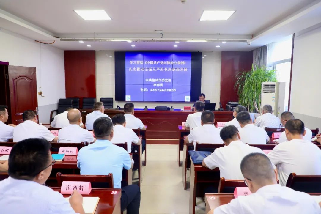 參觀結(jié)束后,在榆陽區(qū)委黨校開展了《中國共產(chǎn)黨紀律處分條例》專題輔導,榆林市委黨校李春雷教授從深刻認識紀律嚴明的重大意義、準確把握《條例》修訂的主要內(nèi)容及抓好《條例》的貫徹執(zhí)行三個方面,進行了政策理論闡述和解讀, 進一步加深了黨員干部對各項紀律規(guī)定的認識和理解,切實把學習黨紀轉(zhuǎn)化為增強廉潔自律、提升黨性修養(yǎng)的全過程。輔導前,集中觀看了廉政教育系列參考片《清除國企蛀蟲》。