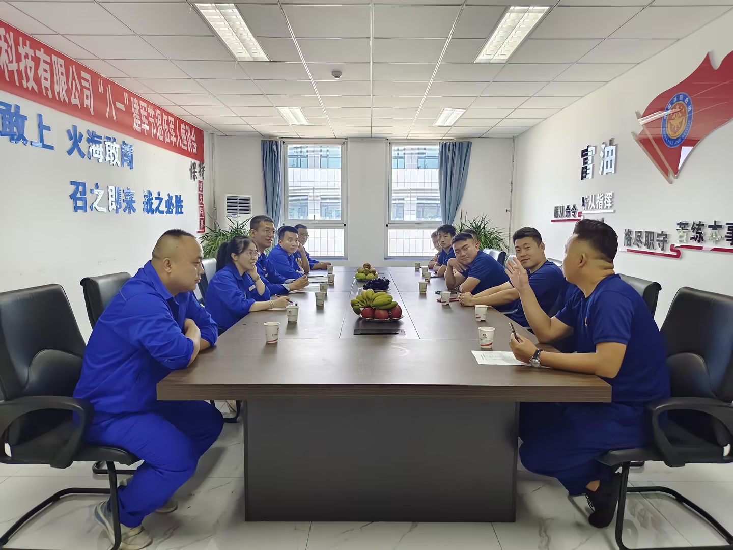 退伍老兵們依次交流發言,憶生活、談感受、提建議。共同回顧軍旅生涯,回憶崢嶸歲月、暢談入伍初心、分享了從軍隊到職場的轉型經歷。同時,分享了他們在富油公司應急消防、維修保運工作中的獨到見解與經驗。退伍軍人們結合自身崗位,就如何進一步提升企業安全管理水平、優化生產流程提出了寶貴建議,展現了“退伍不褪色”的軍人本色。退伍老兵們紛紛表示要把不怕苦、不怕難的精神發揚下去,永葆軍人本色,在各自工作崗位上奉獻擔當,砥礪前行,用實際行動踐行初心使命。