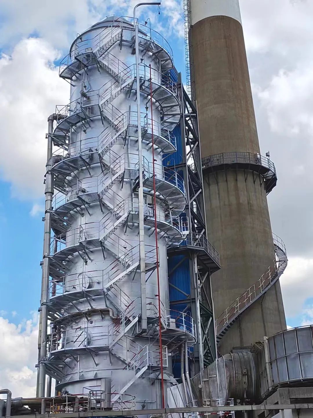 為保障脫硫塔的長期穩定運行,提升廠區整體形象,能源公司對脫硫塔實施了舊保溫拆除及全面的防腐修復工作,讓廠區內迸發出一股新的生機。