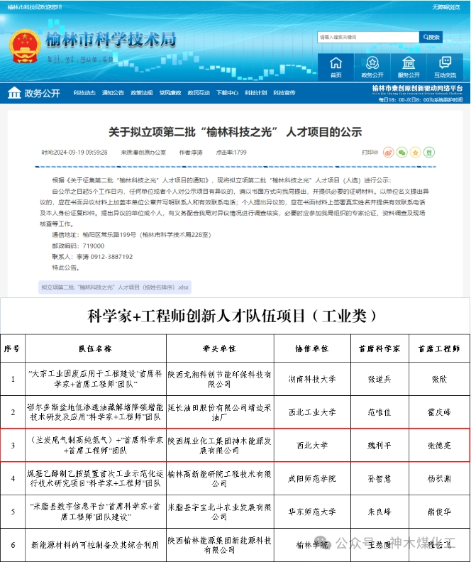 能源公司創(chuàng)新人才項(xiàng)目入選第二批“榆林科技之光”