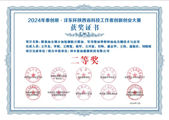 近日,神木煤化工富油公司創(chuàng)新成果《煤焦油全餾分加氫制航天煤油、軍用柴油等特種油品關(guān)鍵技術(shù)與應(yīng)用》在2024年陜西省科技工作者創(chuàng)新創(chuàng)業(yè)大賽中斬獲二等獎(jiǎng)。