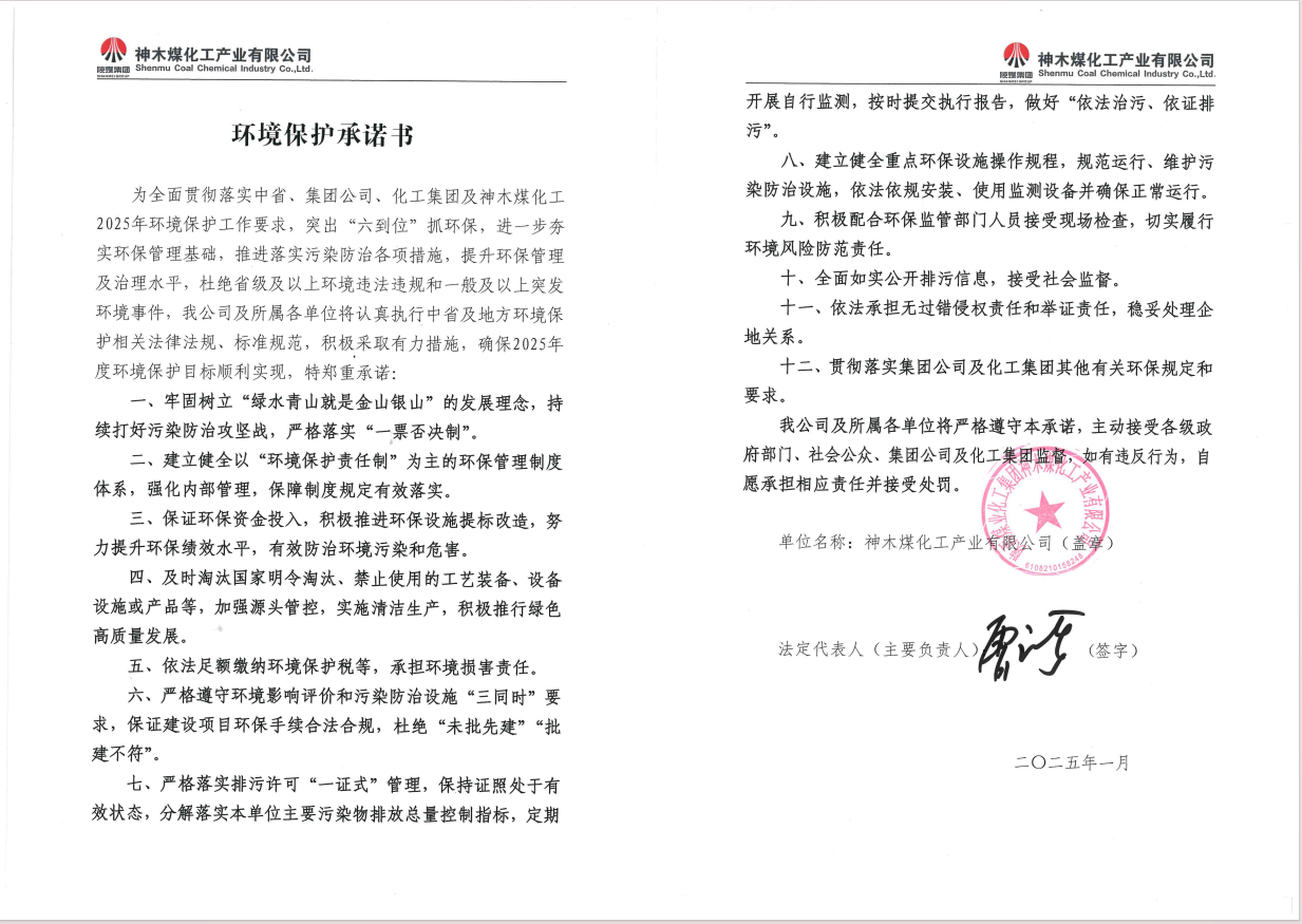 神木煤化工產(chǎn)業(yè)有限公司2025年環(huán)境保護(hù)承諾書
