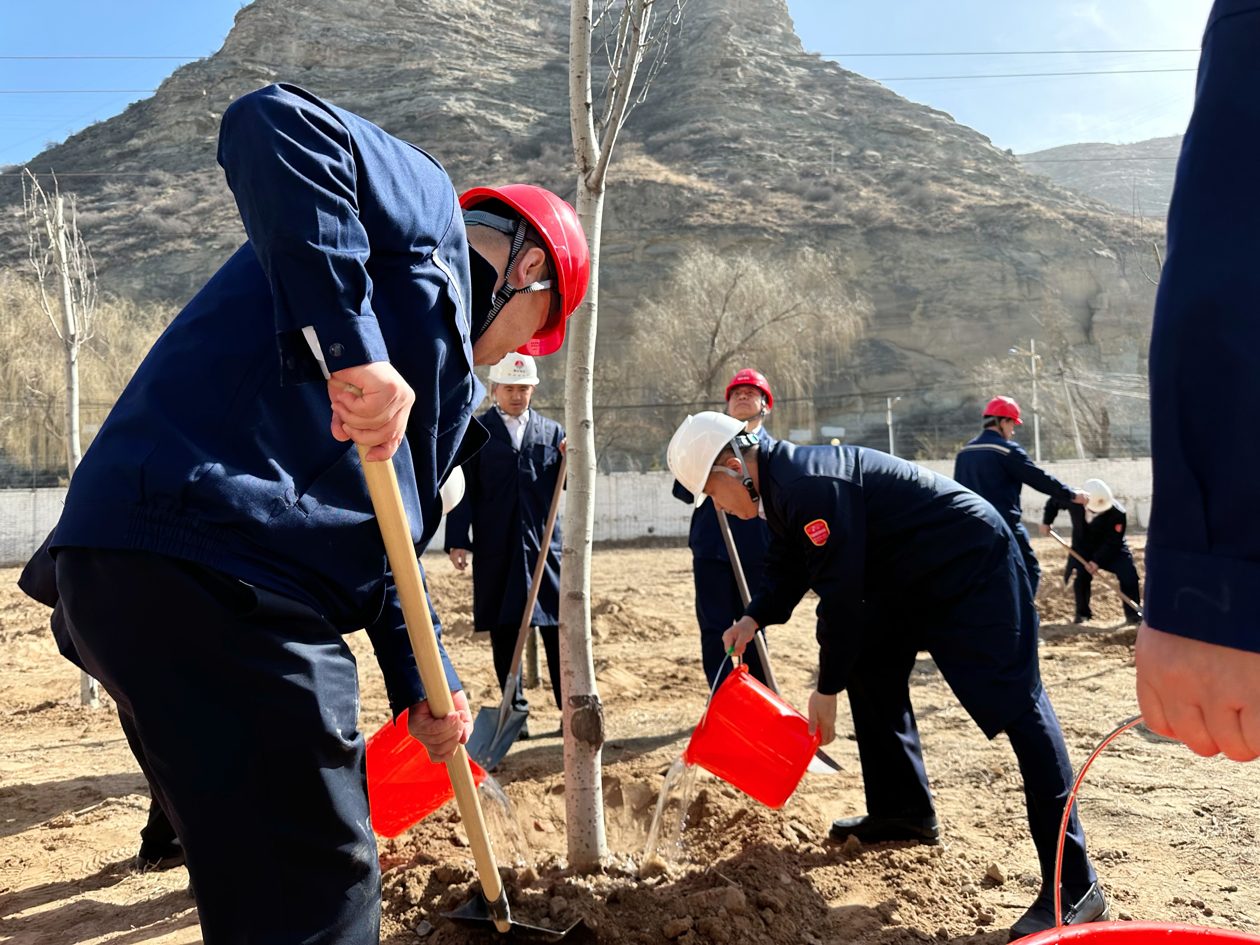 活動現場,“植此新綠 打造花園式工廠”的簽名墻見證全員決心。 大家個個興趣滿滿、熱情高漲,有的揮鍬培土,有的扶正夯實,還有的澆水灌溉,在相互協作中將一抹抹綠意立于沃土之上,活動氣氛熱烈而融洽。經過一番辛勤的勞動,一棵棵新栽種的白楊樹苗迎風挺立,在明媚的春光中展現出勃勃生機,為初春的電化公司花園式廠區增添了一道靚麗的風景線。