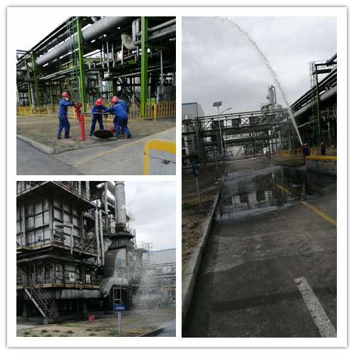 從發(fā)現(xiàn)泄漏點、報告車間和生產(chǎn)部,到立即啟動車間級應(yīng)急預(yù)案,緊急泄壓、現(xiàn)場警戒、爐膛通滅火蒸汽、切斷燃料氣、投用消防炮對周圍設(shè)備和管線進行降溫防護等一系列模擬操作,演練人員合理分工、密切配合,圓滿完成了演練任務(wù)。