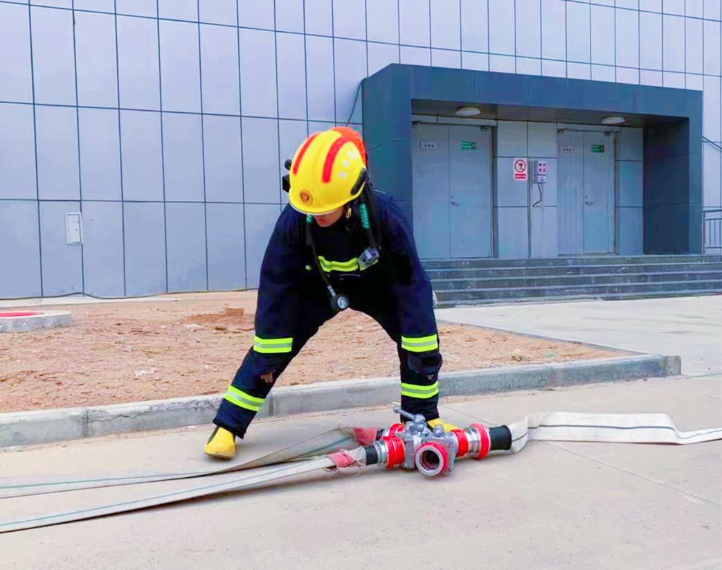 訓(xùn)練場(chǎng)上,筆者看到專職消防隊(duì)員們穿著10多公斤的全套防護(hù)裝備,包括像棉被一樣厚的戰(zhàn)斗服、沉甸甸的滅火頭盔、戰(zhàn)斗靴、安全腰帶等,還要背著15公斤左右的空氣呼吸器,一邊快速奔跑,一邊接水帶。一次又一次的反復(fù)訓(xùn)練,汗水已經(jīng)浸透他們的裝備,但他們?nèi)匀荒軌蚰贸霭俜种俚木ν度氲接?xùn)練中,確保每一個(gè)動(dòng)作都做到準(zhǔn)確無(wú)誤。