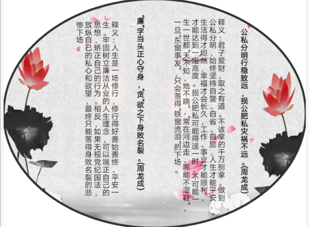 此次提煉企業(yè)廉政文化理念征集以“廉”為冠,囊括廉政價值觀、廉政自律理念、廉潔自律行為規(guī)范、廉政信條、管理理念等內(nèi)容。活動開展以來,廣大員工積極響應(yīng)、踴躍參加。截止活動結(jié)束,共收集到50余條主題較鮮明、立意較深刻、內(nèi)涵較豐富且便于宣貫識記的廉政文化核心理念,經(jīng)公司紀(jì)委嚴(yán)格遴選,對10條優(yōu)秀廉政文化理念在公司“富油e訊”及企業(yè)微信群等公眾平臺進(jìn)行了展示和宣傳。