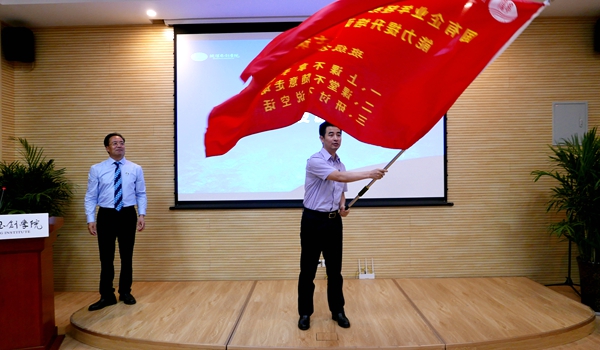 最后,付戰(zhàn)超向?qū)W員代表王瑋授本期培訓(xùn)班班旗。旗幟上印有“班級(jí)公約”:一是上課不拿手機(jī);二是課堂不隨意走動(dòng);三是研討不說空話。