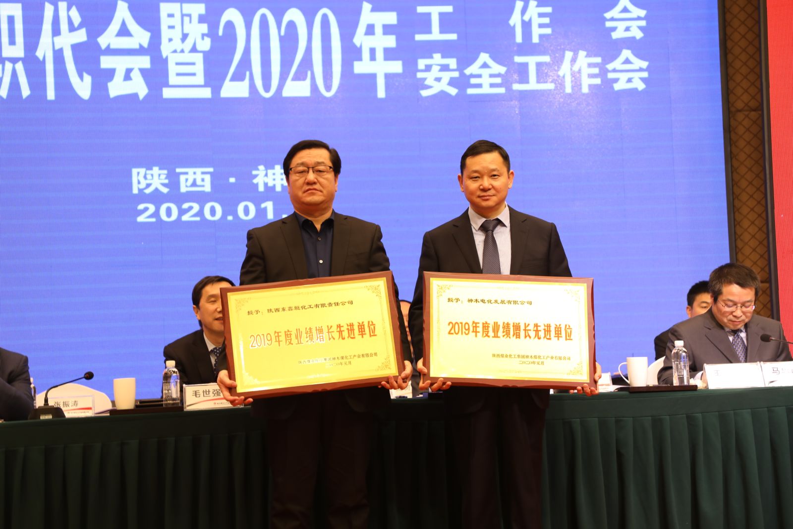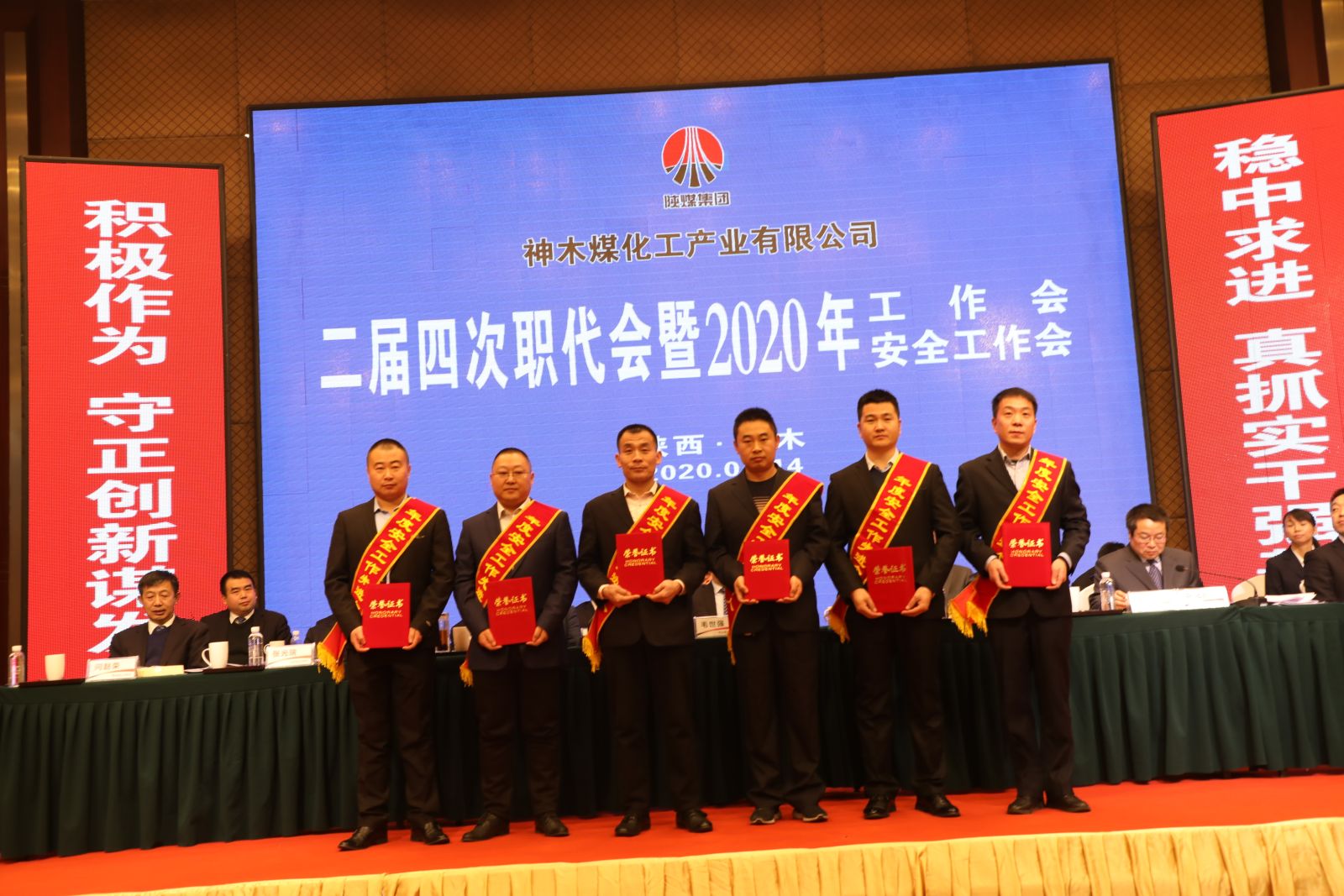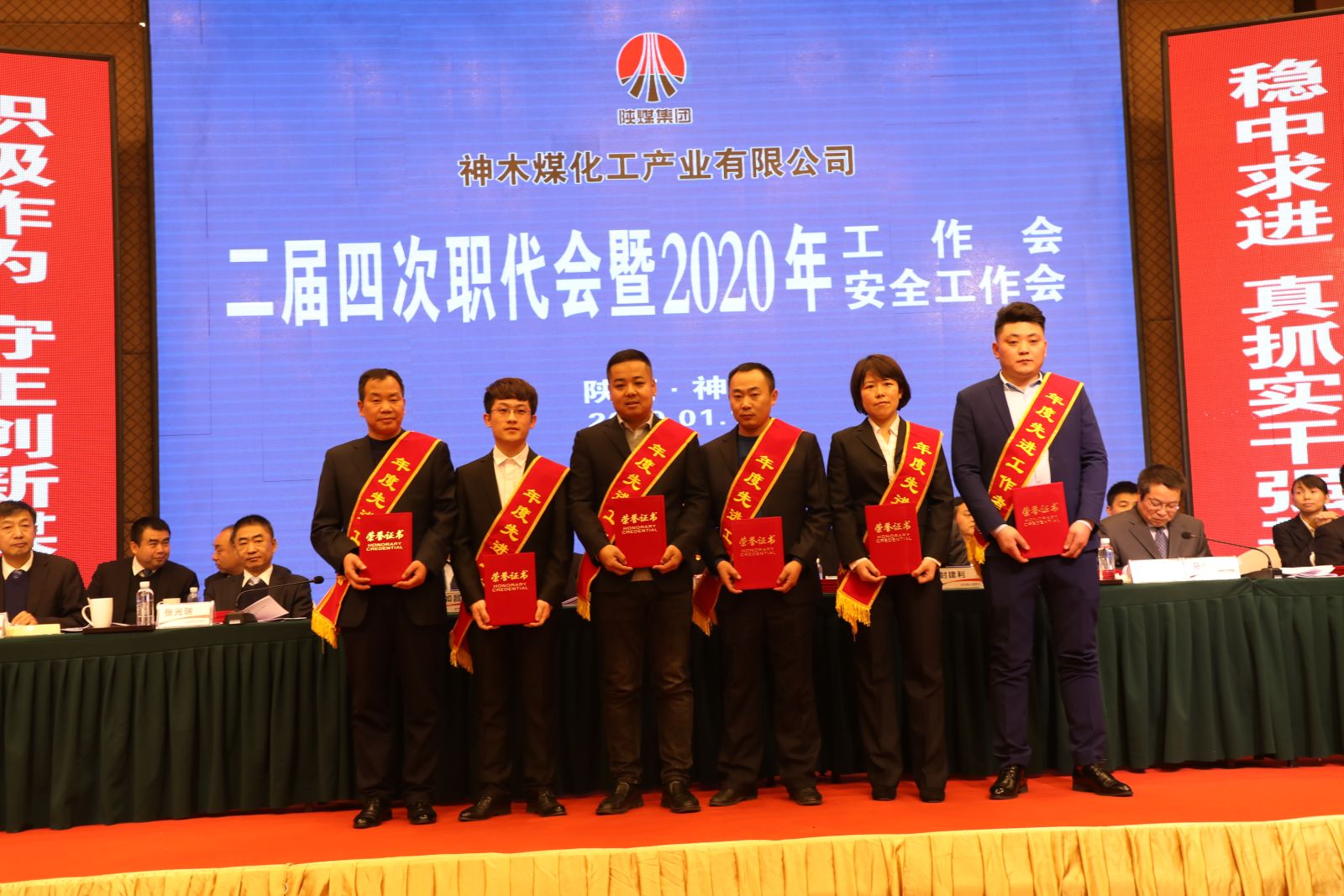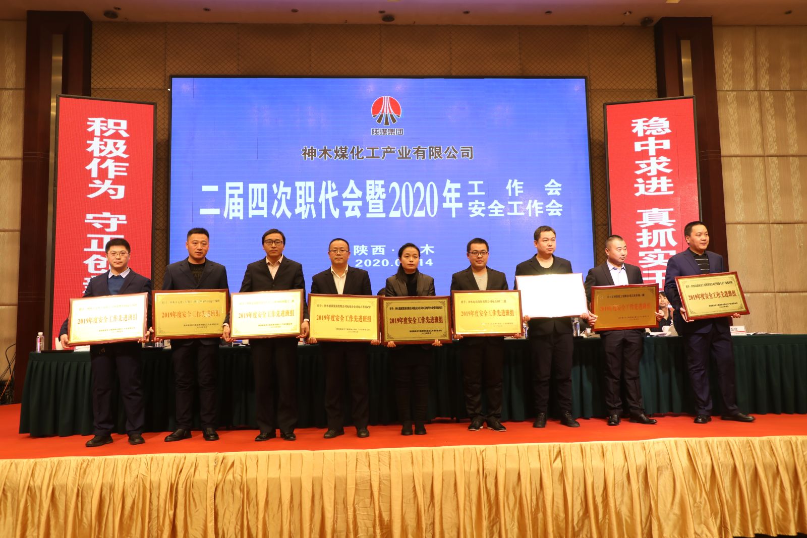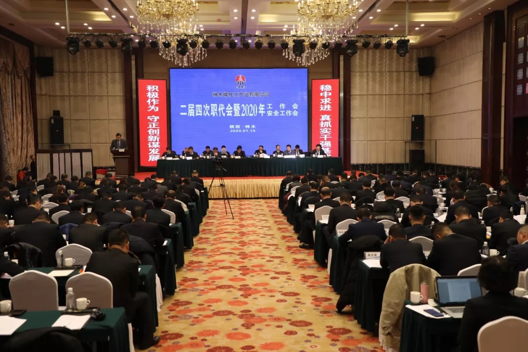 1月14日,神木煤化工召開二屆四次職代會暨2020年工作會、安全工作會。會議全面總結回顧了神木煤化工2019年取得的成績,客觀分析了面臨的形勢與存在的問題,安排部署了2020年重點工作。公司領導班子成員及所屬九家參控股單位、供銷分公司職工代表,受表彰先進代表共計160余人參加會議。