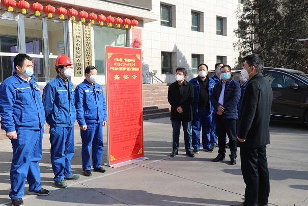 2月22日,神木煤化工黨委委員、副總經(jīng)理張光瑞代表公司黨政,頒發(fā)了公司成立以來(lái)首個(gè)嘉獎(jiǎng)令,獎(jiǎng)勵(lì)逆境中電石產(chǎn)量屢創(chuàng)新高的電化公司。