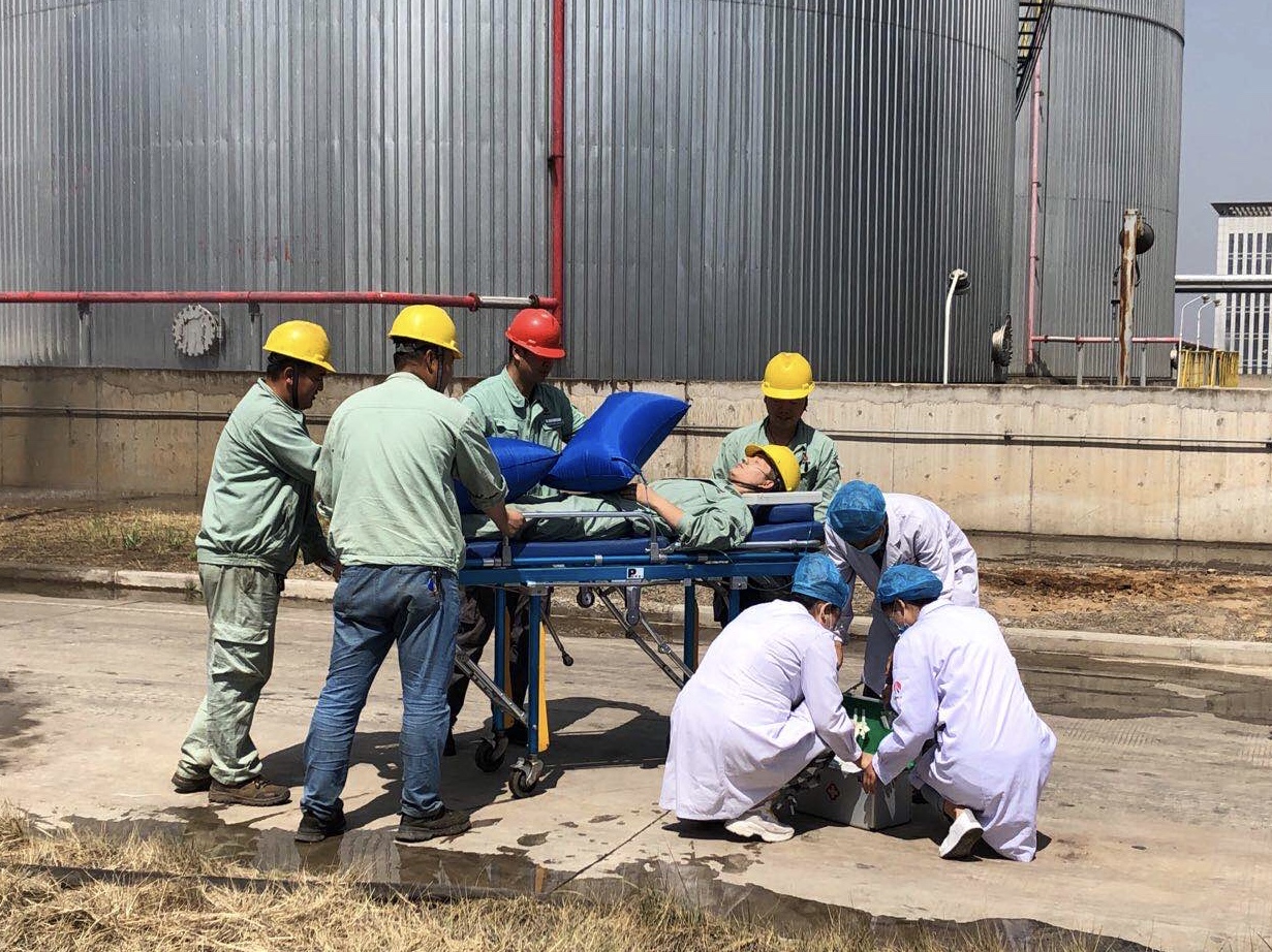 演練模擬6月12日上午10點,該公司制油分廠罐區(qū)兩名巡檢工在例行日常巡檢時發(fā)現(xiàn)儲油罐T-54206泄漏引起著火事故,其中一名巡檢工煙氣中毒暈倒。該公司緊急啟動生產(chǎn)安全事故應急預案,并將火情向廟溝門人民政府及府谷縣應急管理局報告。該公司消防隊、醫(yī)療和后勤保障組、設備搶修組、安全環(huán)保組、技術組、環(huán)保監(jiān)測組等專業(yè)處置組緊急出動、協(xié)同配合,對受傷人員進行有效救援處置,火情完全得到控制并逐漸消除,應急演練圓滿完成。