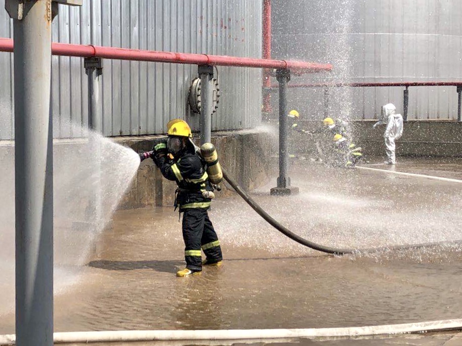 今年六月是全國第19個安全生產(chǎn)月,按照東鑫垣公司安全生產(chǎn)月統(tǒng)一部署,6月12日上午,府谷縣應急管理局和該公司聯(lián)合主辦的儲油罐區(qū)T-54206油罐泄漏著火事故應急演練在該公司制油分廠成品油罐區(qū)開展。府谷縣應急管理局、廟溝門鎮(zhèn)人民政府、該公司相關部門人員等100余人參加演練。