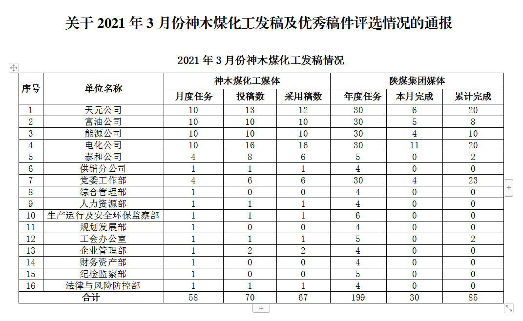 關(guān)于2021年3月份公司發(fā)稿及優(yōu)秀稿件評(píng)選情況的通報(bào)