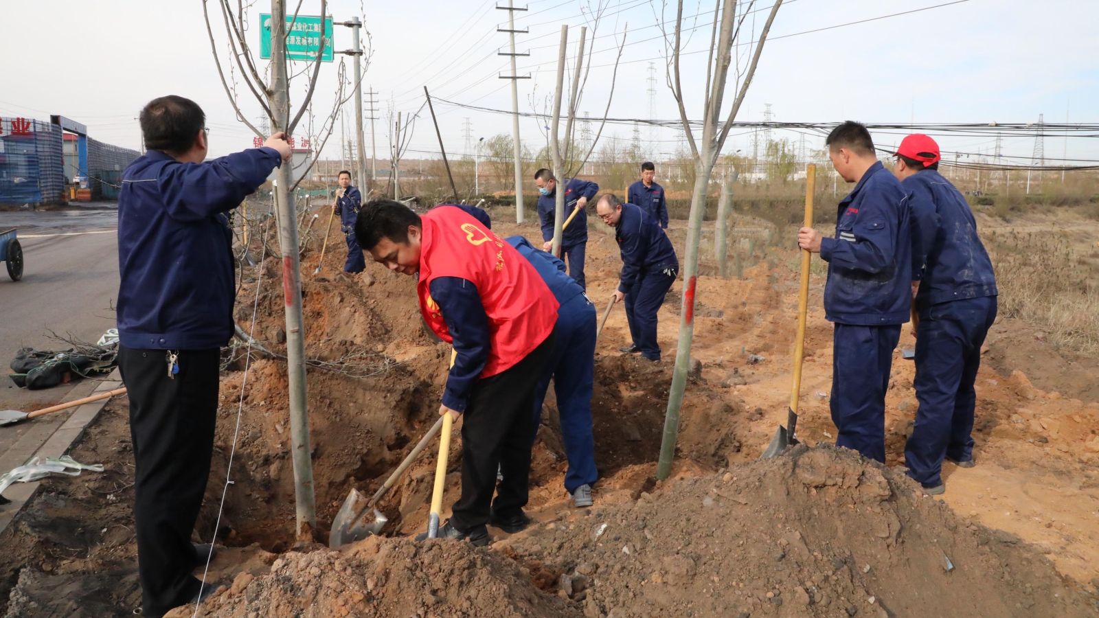 活動現場,黨旗飄揚,黨員干部、職工充分發揚不怕臟、不怕累的精神,大家干勁十足,挖穴、扶苗、填土、踩實、澆水,每道工序都一絲不茍、各個環節配合得非常默契,合力栽下一顆顆綠化樹苗,生動展示了黨員干部爭做生態文明建設先鋒的良好形象。經過一上午的努力,200余株楊樹苗整齊成行,生機盎然地矗立在風中,新栽種的綠化樹苗在道路兩旁構成一道亮麗風景線,為廠區增添了一片新綠。