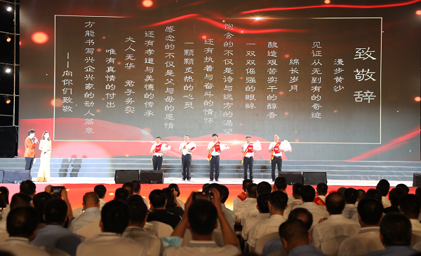 “漫步黃沙,見證從無到有的奇跡;綿長歲月,釀造艱苦實干的醇香。一雙雙倔強的眼眸,飽含的不僅是詩與遠方的渴望,還有執著與奮斗的情懷。”頒獎盛典還隆重表彰了十名“最美員工”和“十大杰出青年”,組委會為他們獻上鮮花和致敬詞,并頒發了獎杯。通過大力宣傳“最美員工”和“十大杰出青年”先進事跡,充分發揮先進典型的示范和帶動作用,掀起崇尚先進、學習先進、爭當先進的熱潮。(徐曉林)
