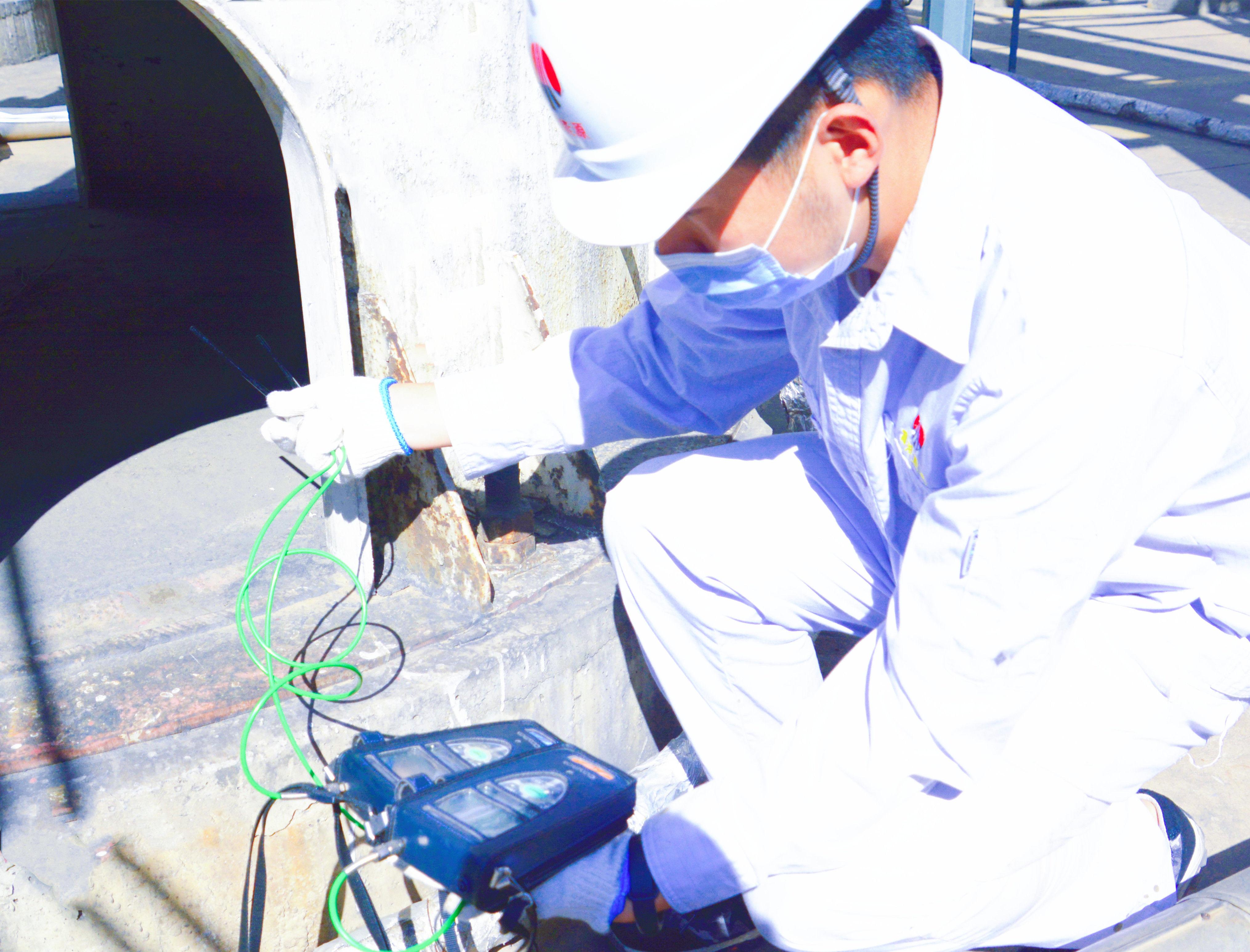 技術人員正在查找漏點,測量管線數據