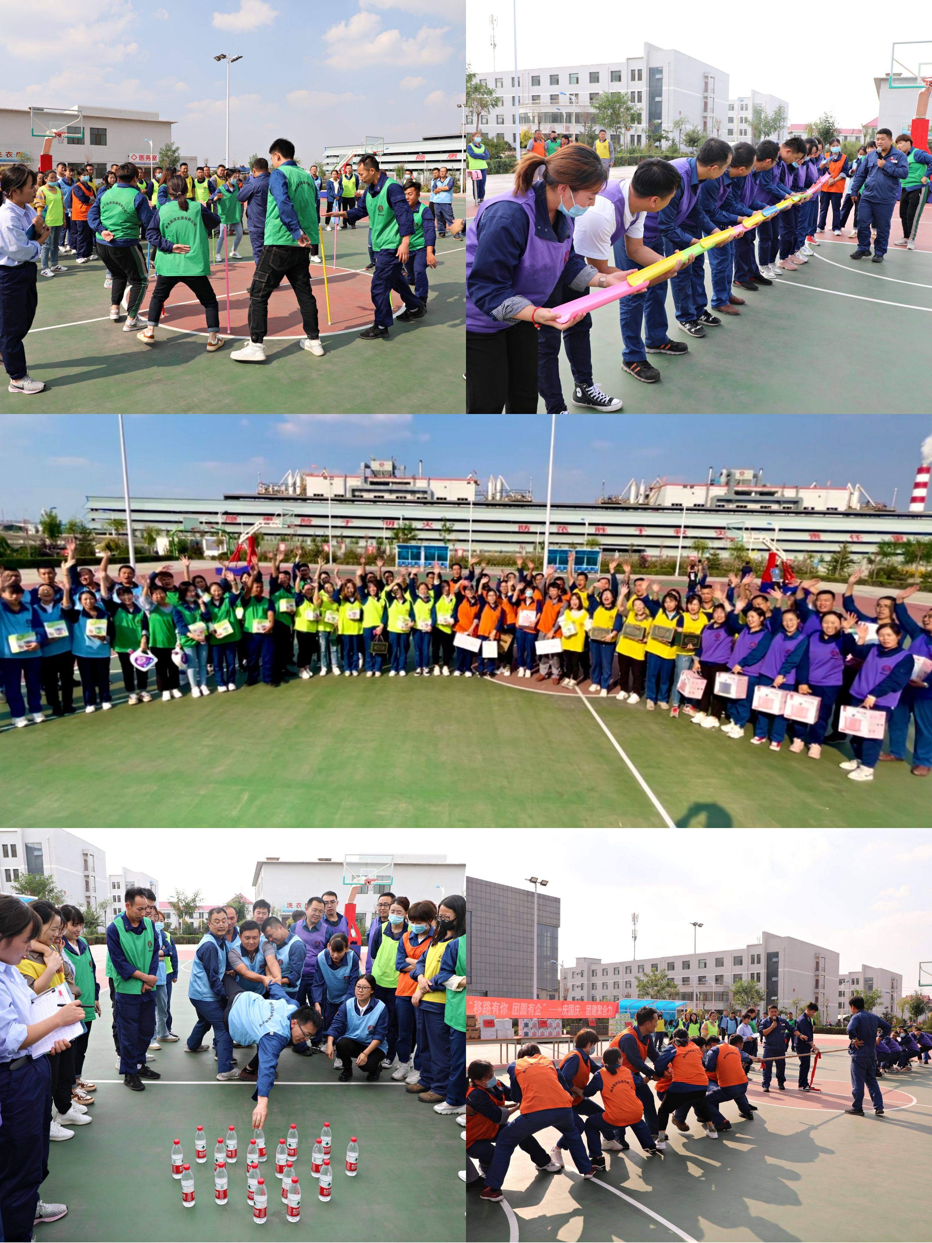 為了讓工作人員建立相互熟知、相互信任的團隊氛圍,能源公司工會組織大家開展了團建活動。比賽由各分公司和機關(guān)人員抽簽組成,共有天藍色、深綠色、熒光綠、橘色、黃色、紫色六支代表隊,當(dāng)主持人將“不倒森林、珠行千里、隔線取物、拔河比賽”等項目的比賽規(guī)則公布后,現(xiàn)場職工都躍躍欲試。