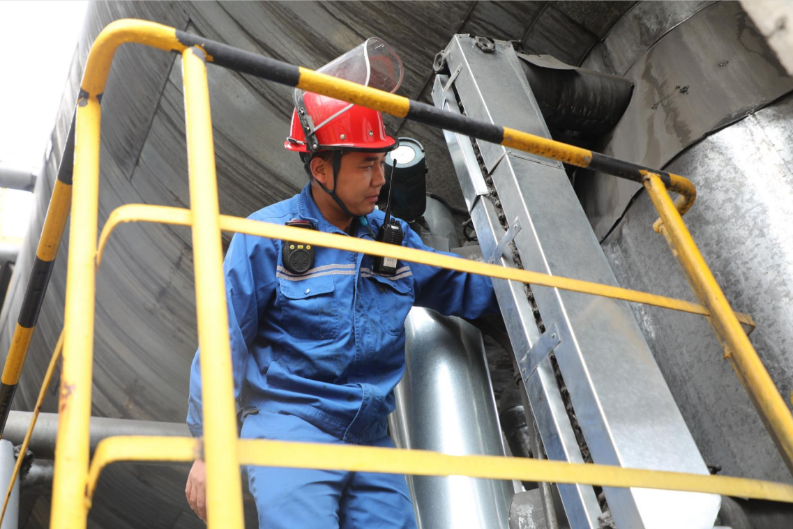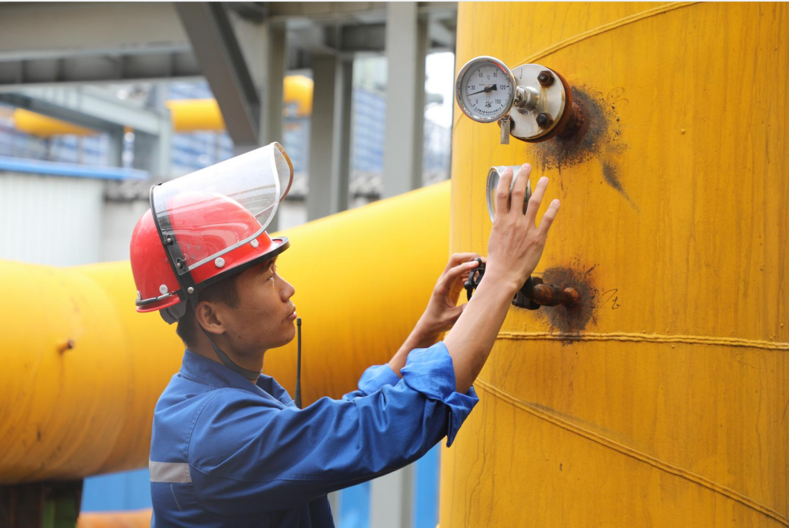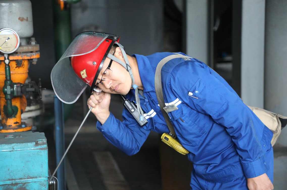 制氫車間一班班長曹海鵬在對轉動設備運行情況進行檢查