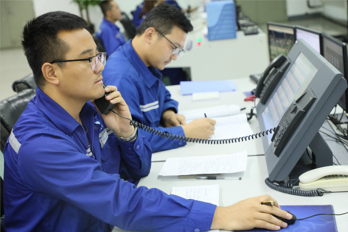 調度室邵立嘉在聯系焦化車間調整外供蒸汽壓力