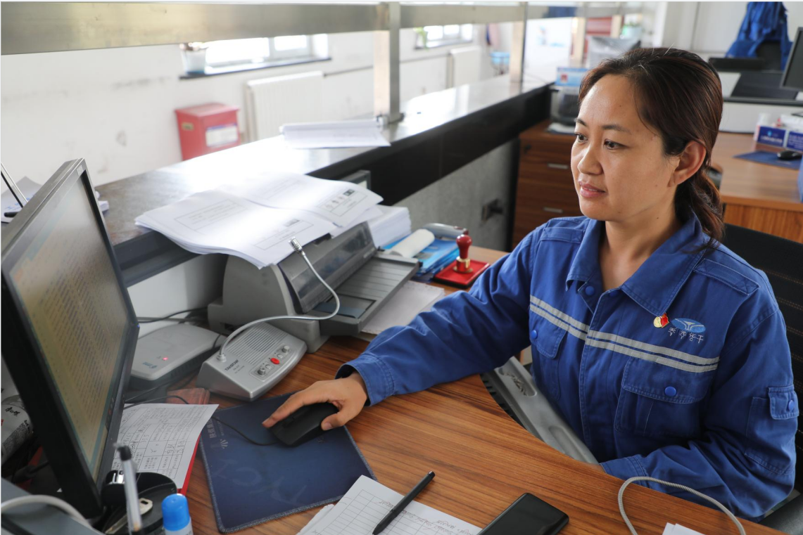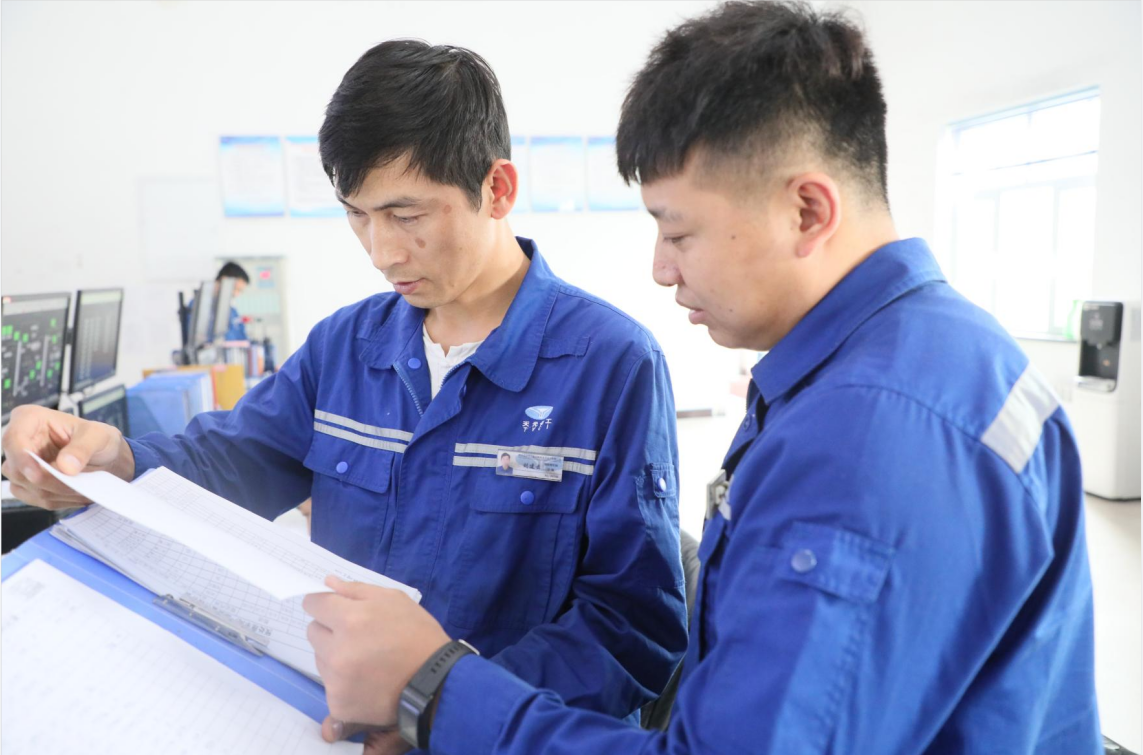 預處理車間劉建云與高羅羅在交接班,了解設備運行及工藝指標等情況