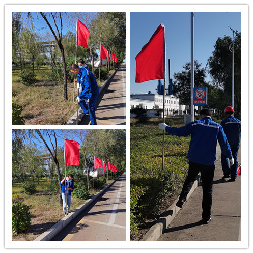 為慶祝新中國成立72周年,9月28日,神木煤化工天元公司第一黨支部開展了“紅旗招展迎國慶”主題黨日活動,在公司廠區主干道兩側、中控室和行政樓前布置國旗,以表達對祖國母親生日的祝福。