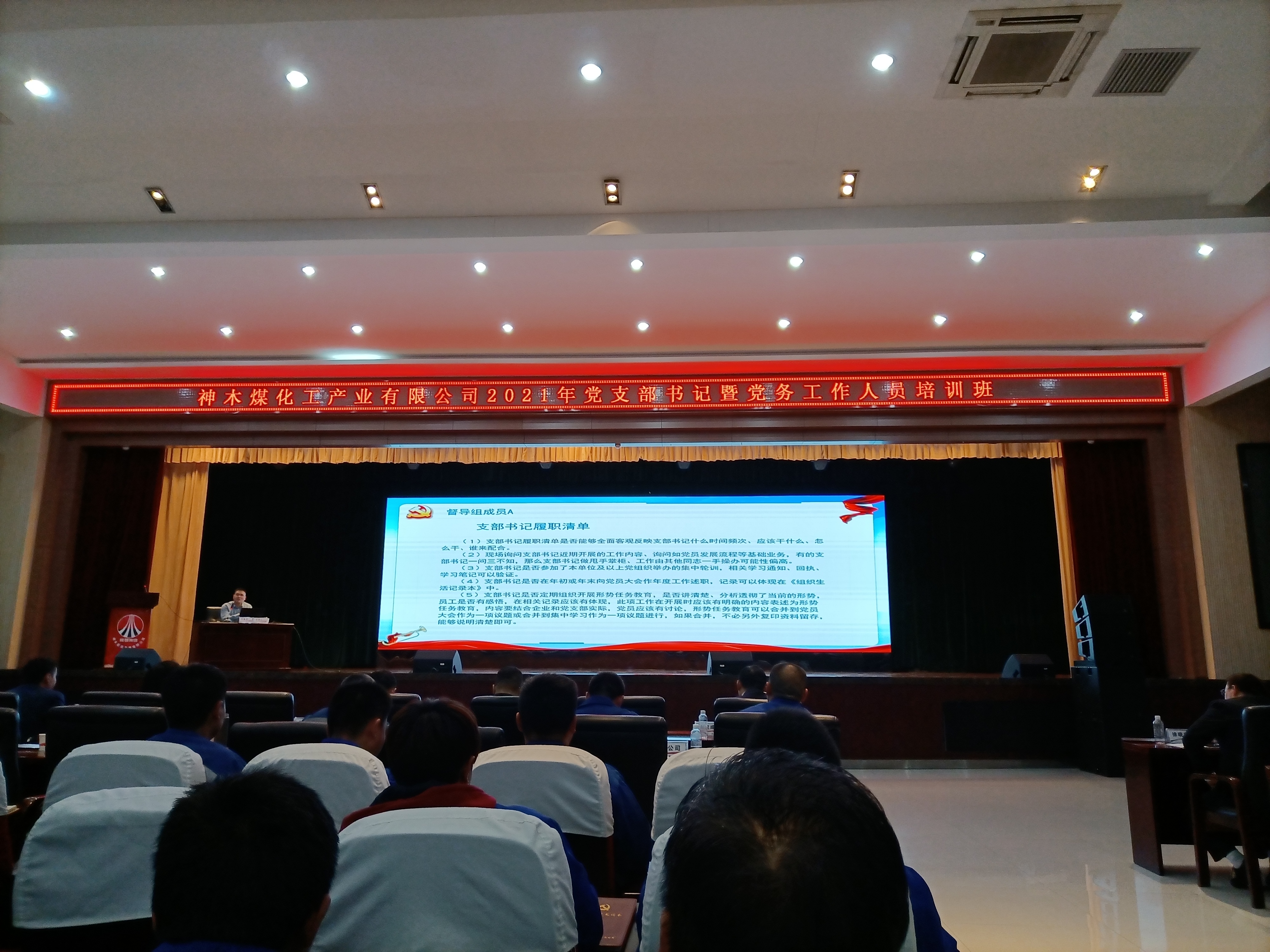 10月14日,神木煤化工公司在所屬能源公司舉辦黨支部書記暨黨務工作人員培訓班。神木煤化工公司機關及所屬各單位黨支部書記、黨務工作者共130多人參加培訓。