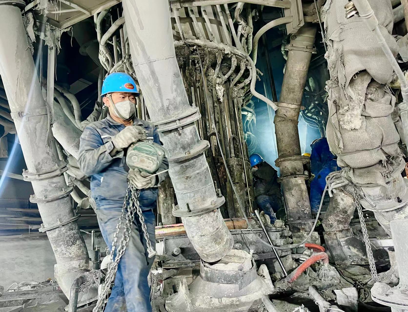 為確保本次檢修任務安全、順利完成,電石分廠特成立了檢修小組和分廠領導值班小組,小組成員執行檢修不休班政策,所有人員一心撲在檢修現場,遠處矗立的辦公樓顯得十分空蕩、寂寥。電石黨支部黨員率先作為,折少平作為檢修班的班長,更是每每不辭勞務加班至深夜,黨員郭勝榮清查檢修作業手續、嚴格把控各項檢修流程、實時監控現場作業環境,支部更是貼心的為大家購買了方便面、礦泉水等臨時飲用物資。分廠領導班子成員鉆爐膛、爬高架,大家齊心協力的和諧畫面一幀一幀被書寫在電石分廠5#電石爐檢修現場