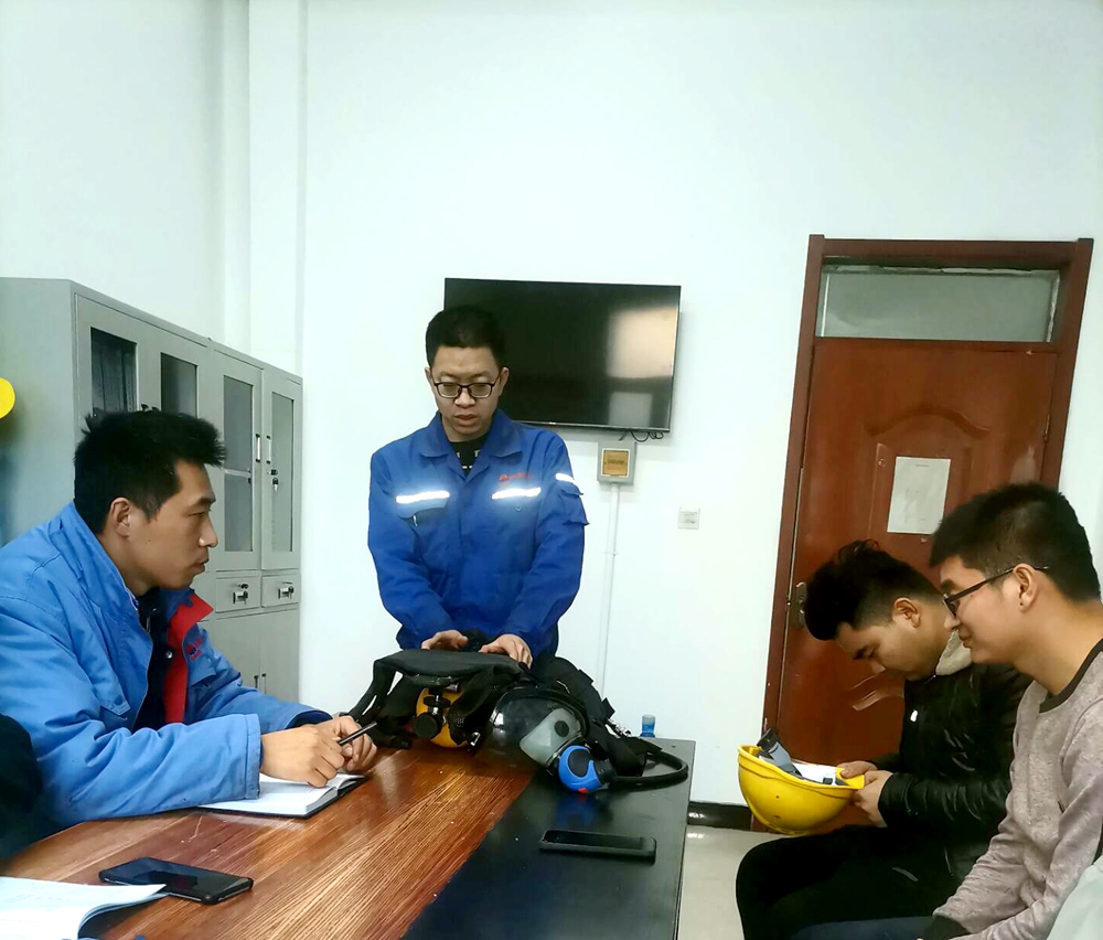 為了進(jìn)一步提高員工應(yīng)急處置和自我防護(hù)能力,近日,神木煤化工泰和公司石灰車間組織班組全體人員開展正壓式空氣呼吸器手指口述和佩戴比賽。泰和公司石灰車間兩位主任作為比賽評(píng)委,對(duì)每位參賽者進(jìn)行現(xiàn)場(chǎng)打分、點(diǎn)評(píng),并對(duì)取得第一名的員工進(jìn)行獎(jiǎng)勵(lì)。