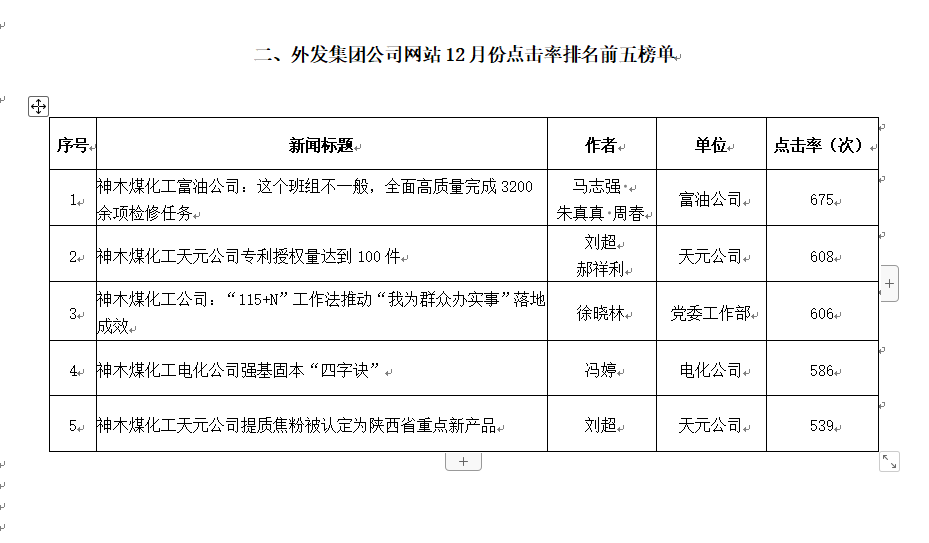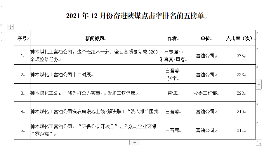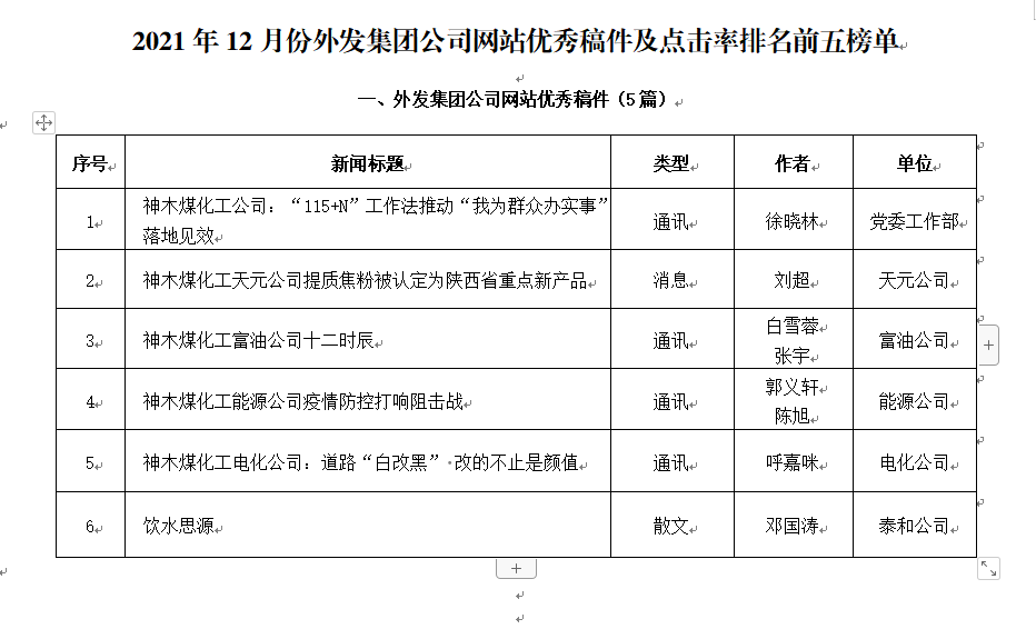 關(guān)于2021年12月份神木煤化工公司發(fā)稿及優(yōu)秀稿件評(píng)選情況的通報(bào)