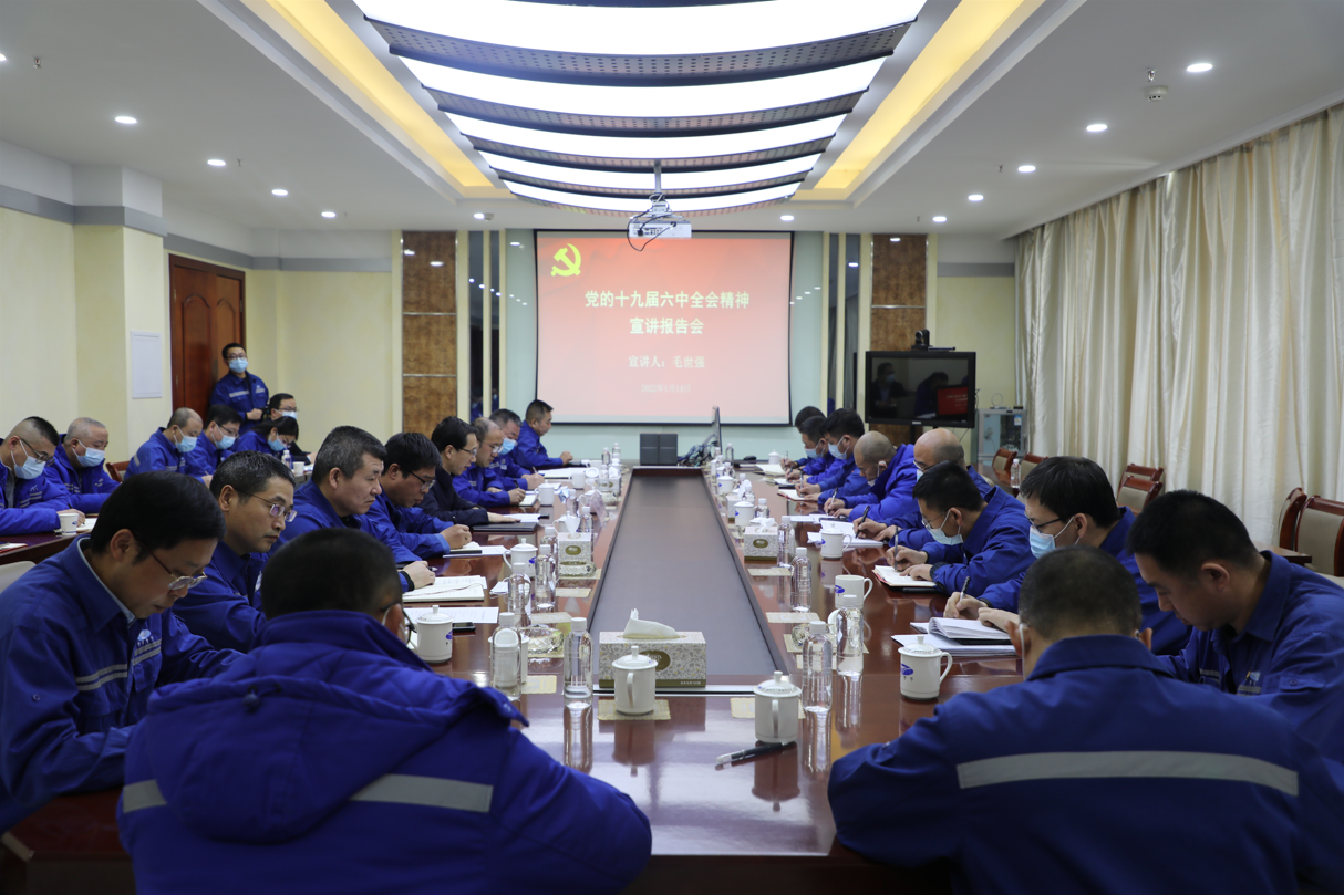 1月14日上午,神木煤化工公司學習貫徹十九屆六中全會精神宣講團走進天元公司,宣講團成員、神木煤化工公司黨委書記、董事長毛世強宣講黨的十九屆六中全會精神。天元公司領導班子成員、各黨支部書記及中層管理人員參加了宣講。