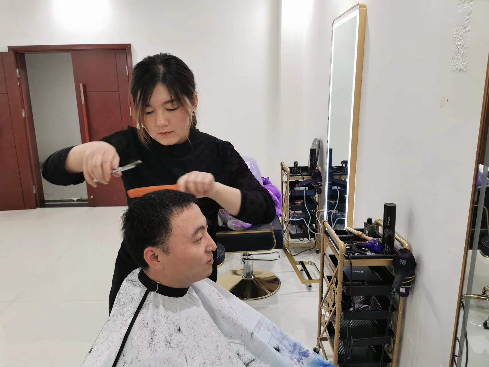 進(jìn)門來(lái),發(fā)長(zhǎng)須亂老大叔;出門去,眉清目秀小年輕。隨著“理發(fā)師”揮舞的雙手,剪刀上下翻飛、頭發(fā)簌簌掉落……很快,一個(gè)精神抖擻的面容便出現(xiàn)在大家的視野中。