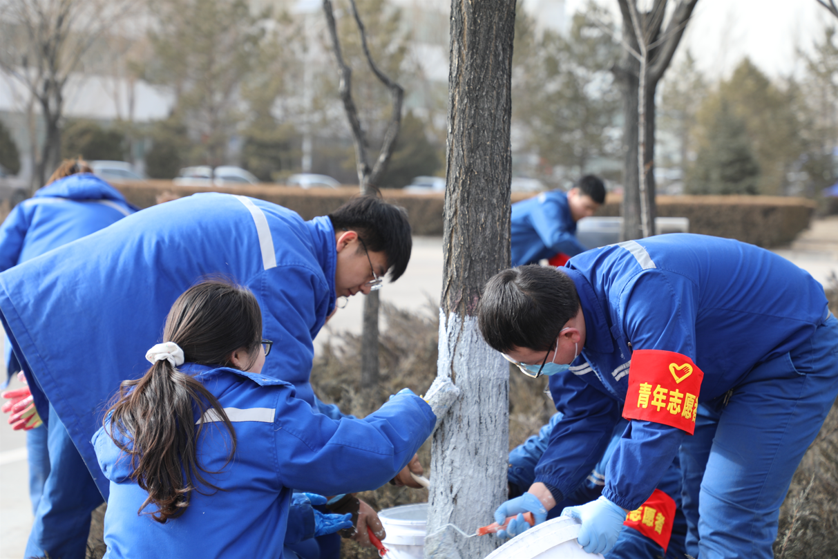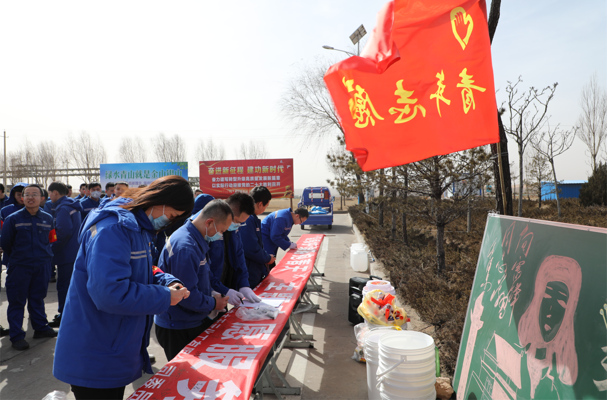 當(dāng)天下午,天朗氣清,春風(fēng)送暖。團(tuán)員們列隊集聚在廠區(qū)停車場前,共同唱響了屬于自己的團(tuán)歌《光榮啊,中國共青團(tuán)》,并紛紛在宣傳橫幅上簽下了自己的名字。接著,志愿護(hù)樹行動正式拉開了序幕。