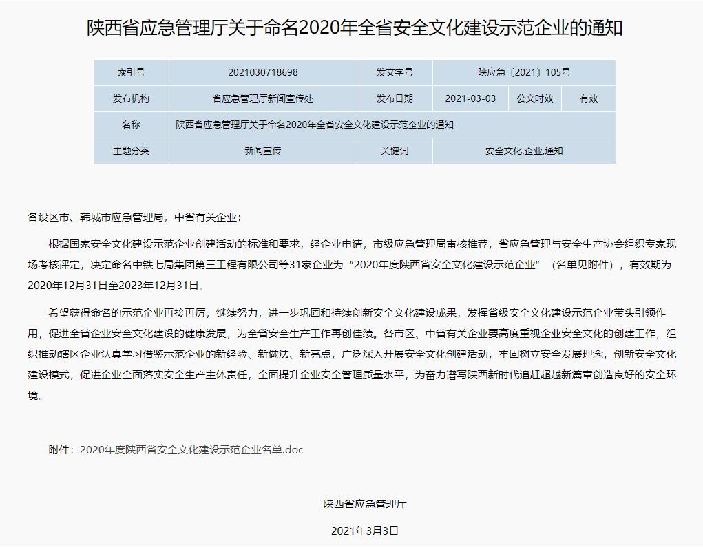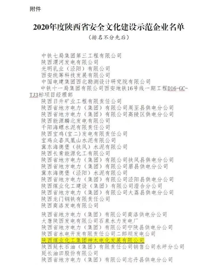 近日,從陜西省應急管理廳發(fā)布的《關于命名2020年全省安全文化建設示范企業(yè)的通知》陜應急〔2021〕105號文件中獲悉,電化公司順利通過省應急管理廳與安全生產協(xié)會專家現(xiàn)場考評,被評定為“2020年度陜西省安全文化建設示范企業(yè)”,有效期為2020年12月31日至2023年12月31日。