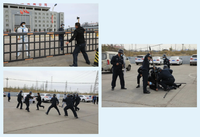 演練假設某村村民張三,因網絡詐騙欠下巨資,感到生活無望,前途黑暗,導致精神恍惚,仇視社會,攜帶管制刀具企圖進入公司搞破壞,發泄心中不滿。能源公司安保隊值班人員發現異常,立即上前制止并報告,來人氣急敗壞,兇相畢露,并從隨身背包拿出管制刀具及可疑包裹,意欲沖入公司。